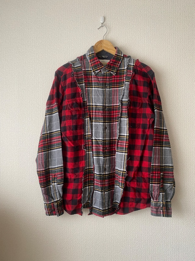 ネルシャツリメイク ドッキングスカート レッド×ブルー