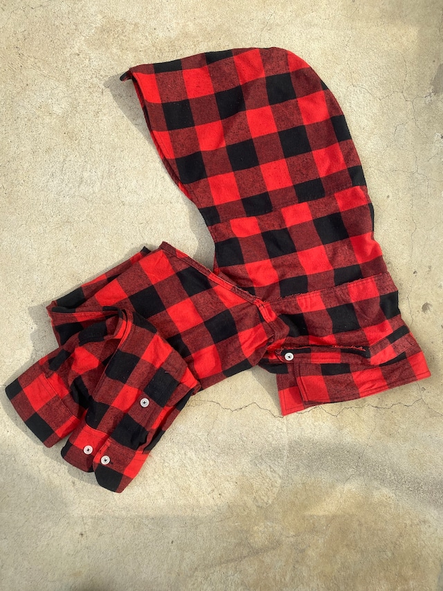 ヴィンテージのフェルトコートにバッファローチェックのネルシャツを分解して縫い付けました。 リバーシブルで着用可能です。 表と裏で違った表情を楽しんでください。 脇下に通気口があります。 寸法は平置きで 身幅 64cm 肩幅 50cm 袖丈 57cm 着丈 80cm(チェックシャツの裾まで) ※古着特有の毛羽立ちなどの風合いがあります。ご了承ください。