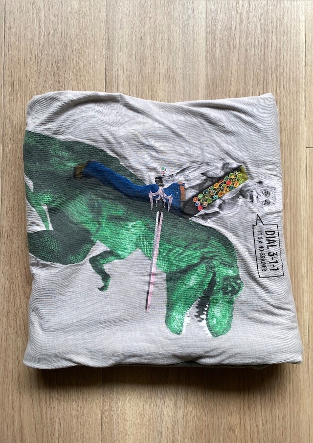 メッセージが特徴的な古着のTシャツと プードルファーで作ったリバーシブル仕様のスヌードです。 表と裏で違った表情を見せてくれます。 寸法 縦 38cm 首回り 76cm