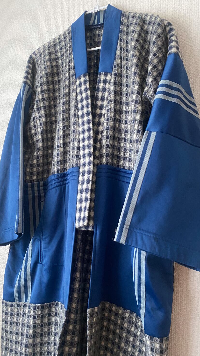 ウール×ジャージパンツドッキング羽織風コート