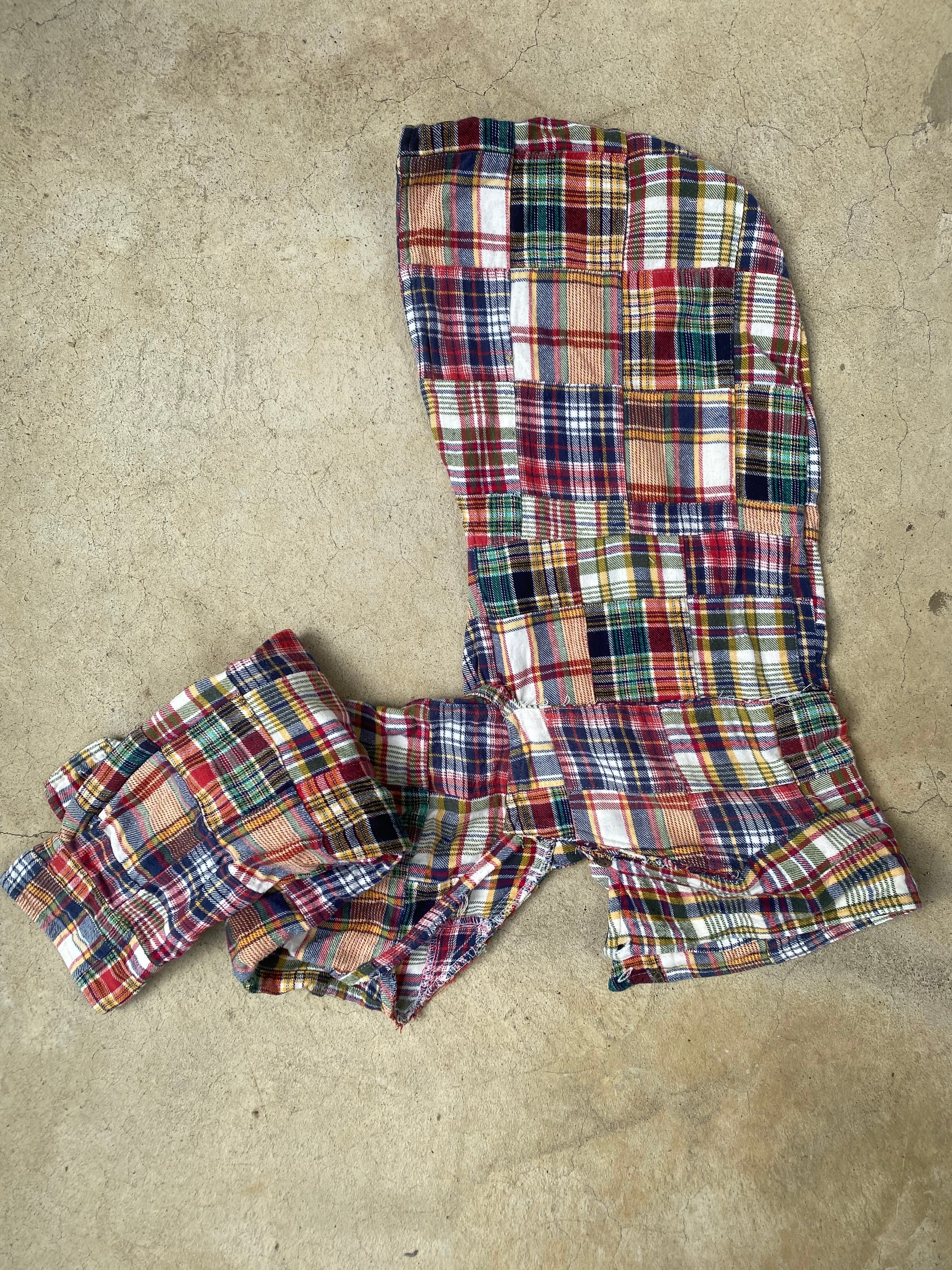 パッチワークネルシャツをリメイクして作り上げた