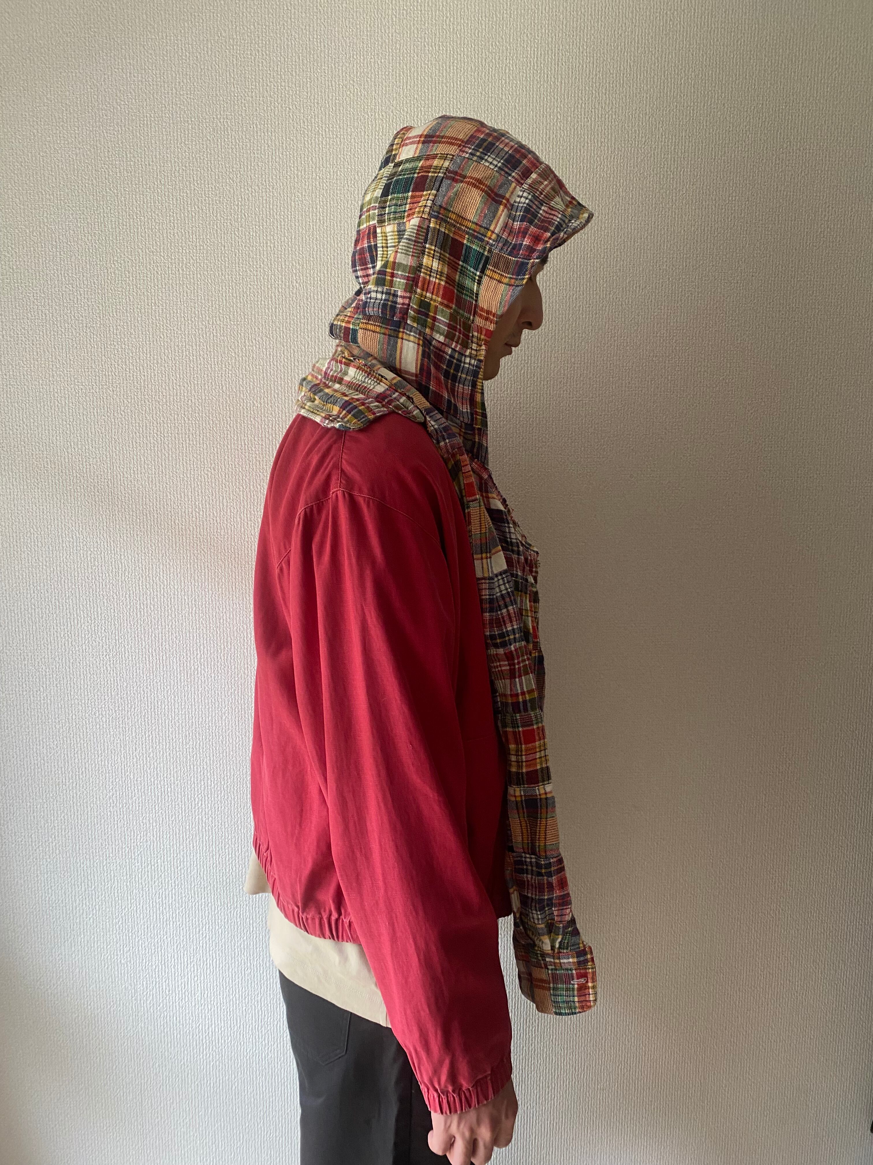 パッチワークネルシャツリメイクフード付きストール①