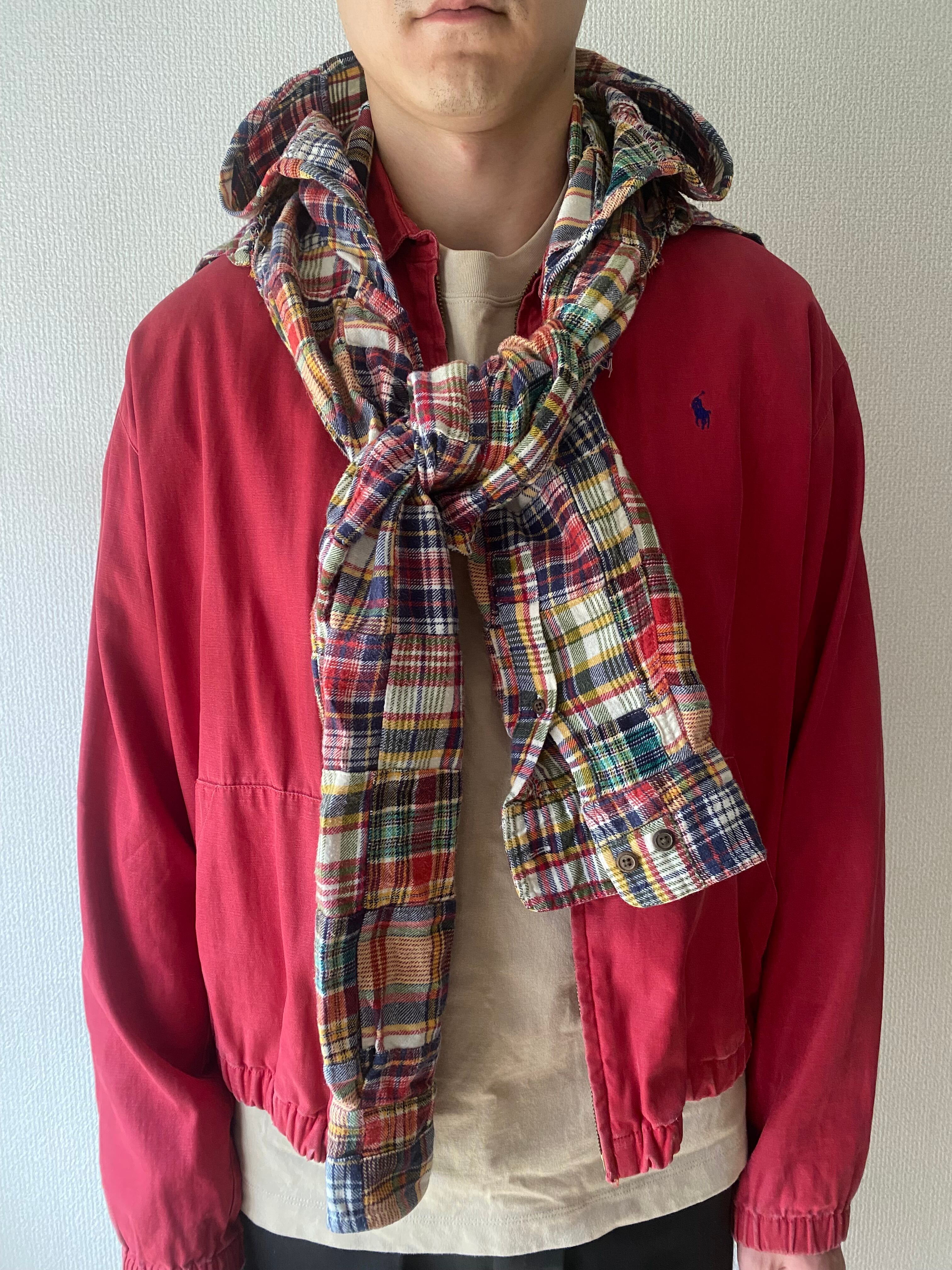 ■パッチワークネルシャツリメイクフード付きストール①