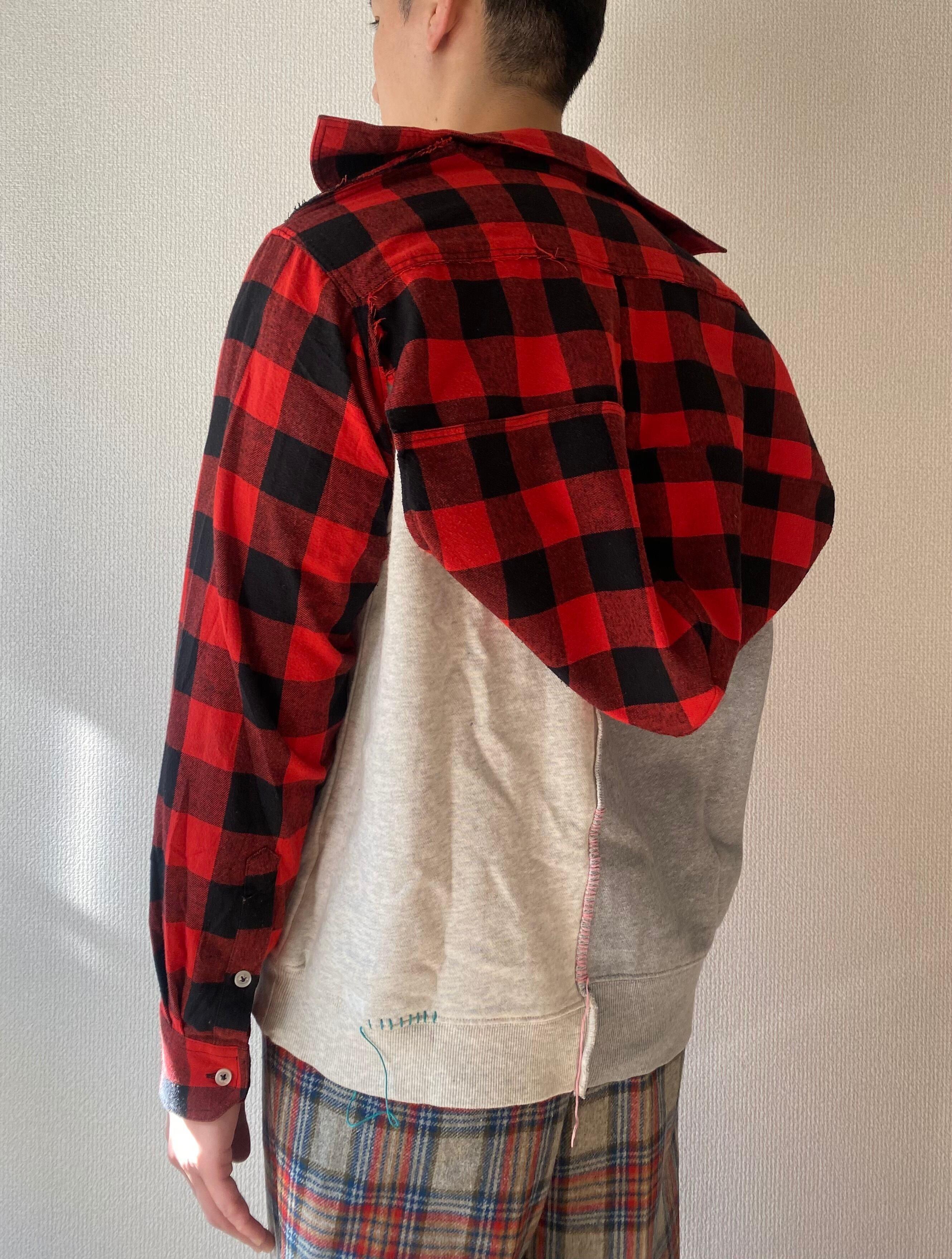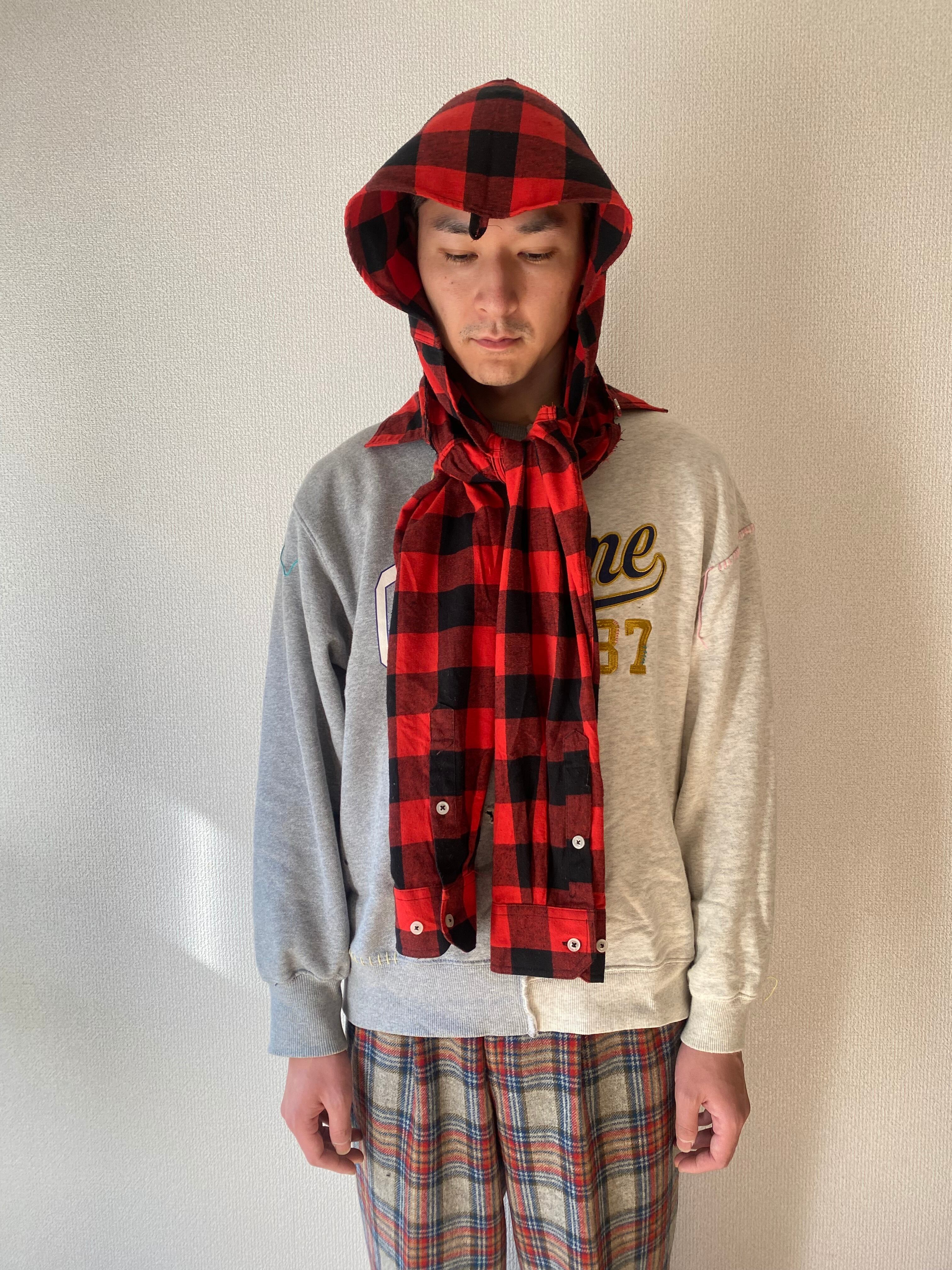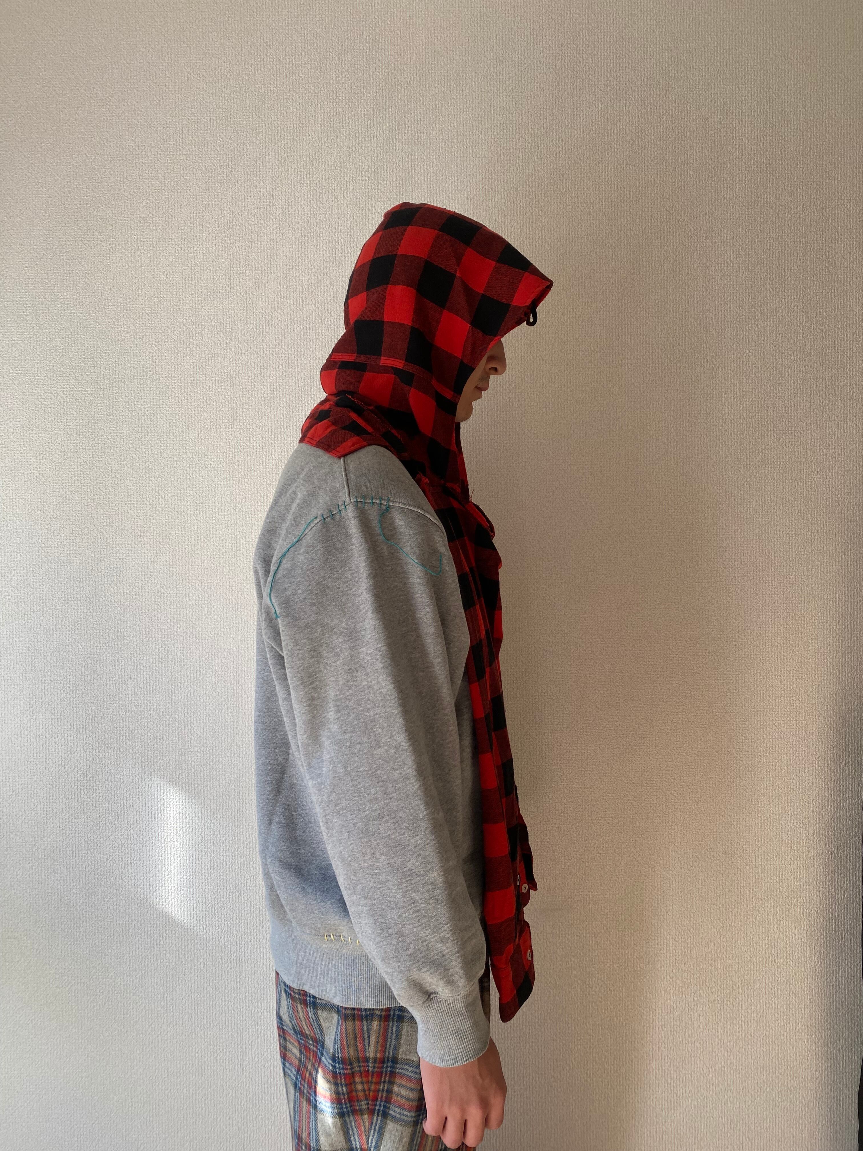 ネルシャツをリメイクして作り上げたフード付ストールが登場です!