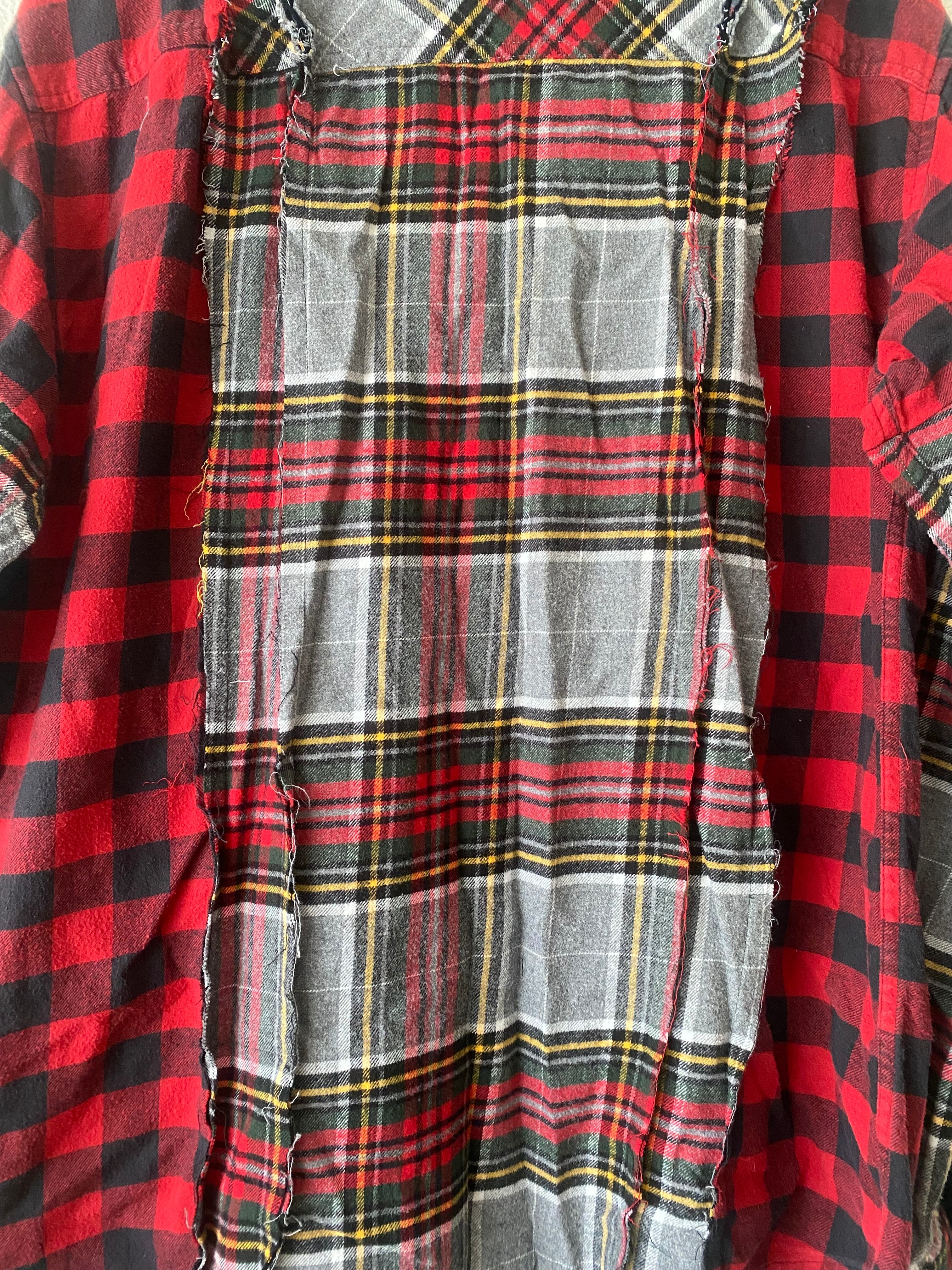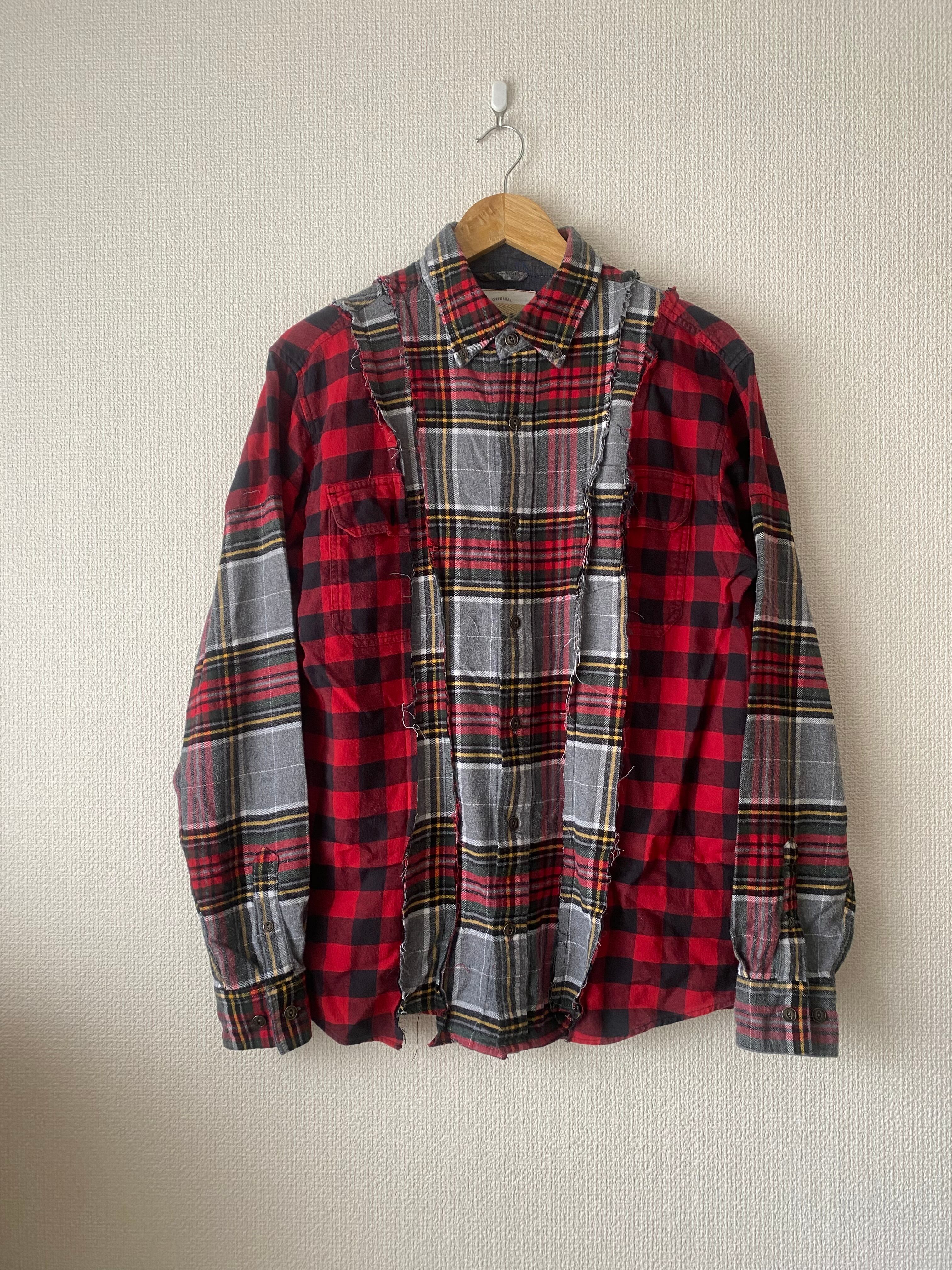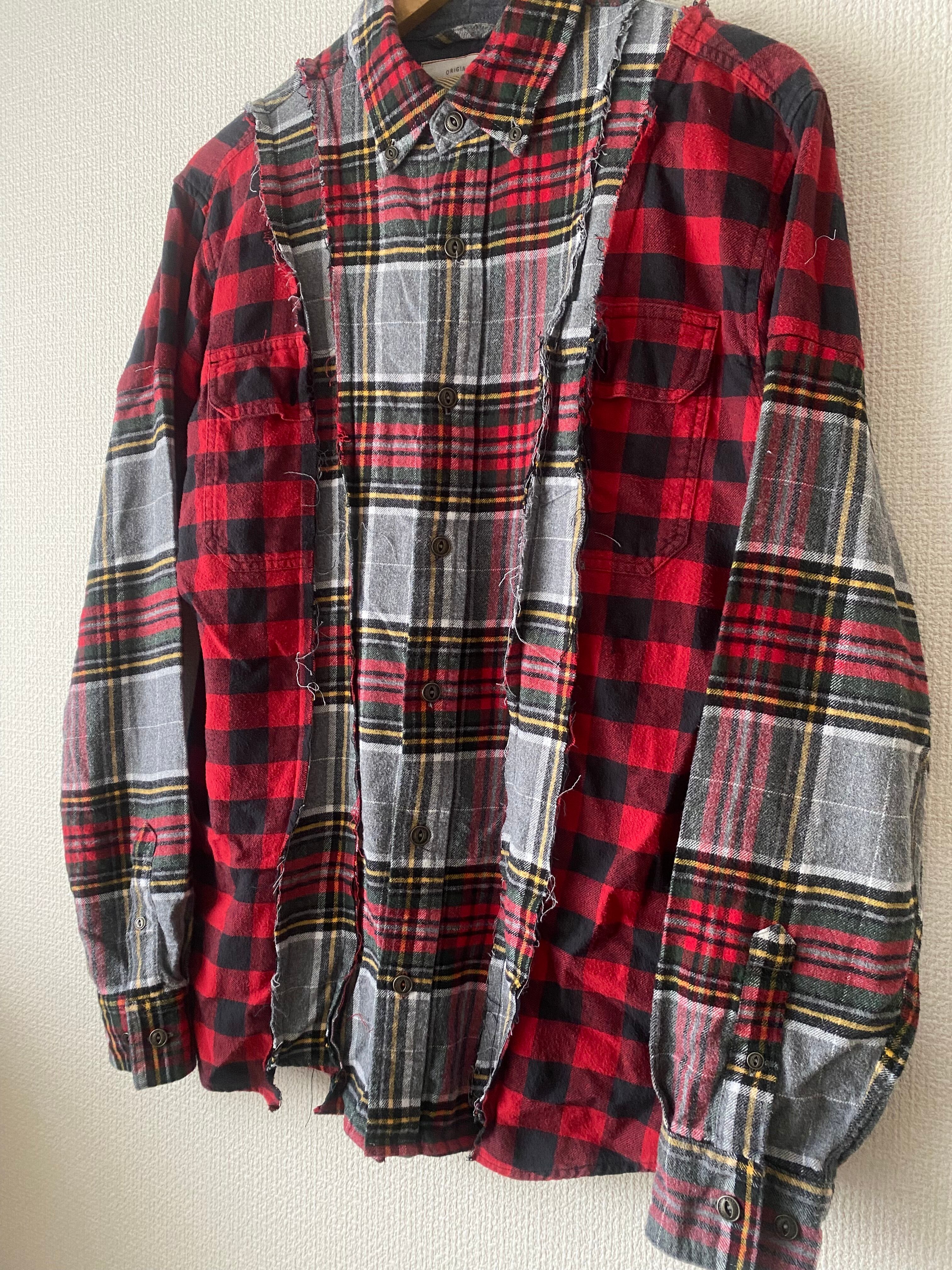 ネルシャツリメイク グレー×レッド