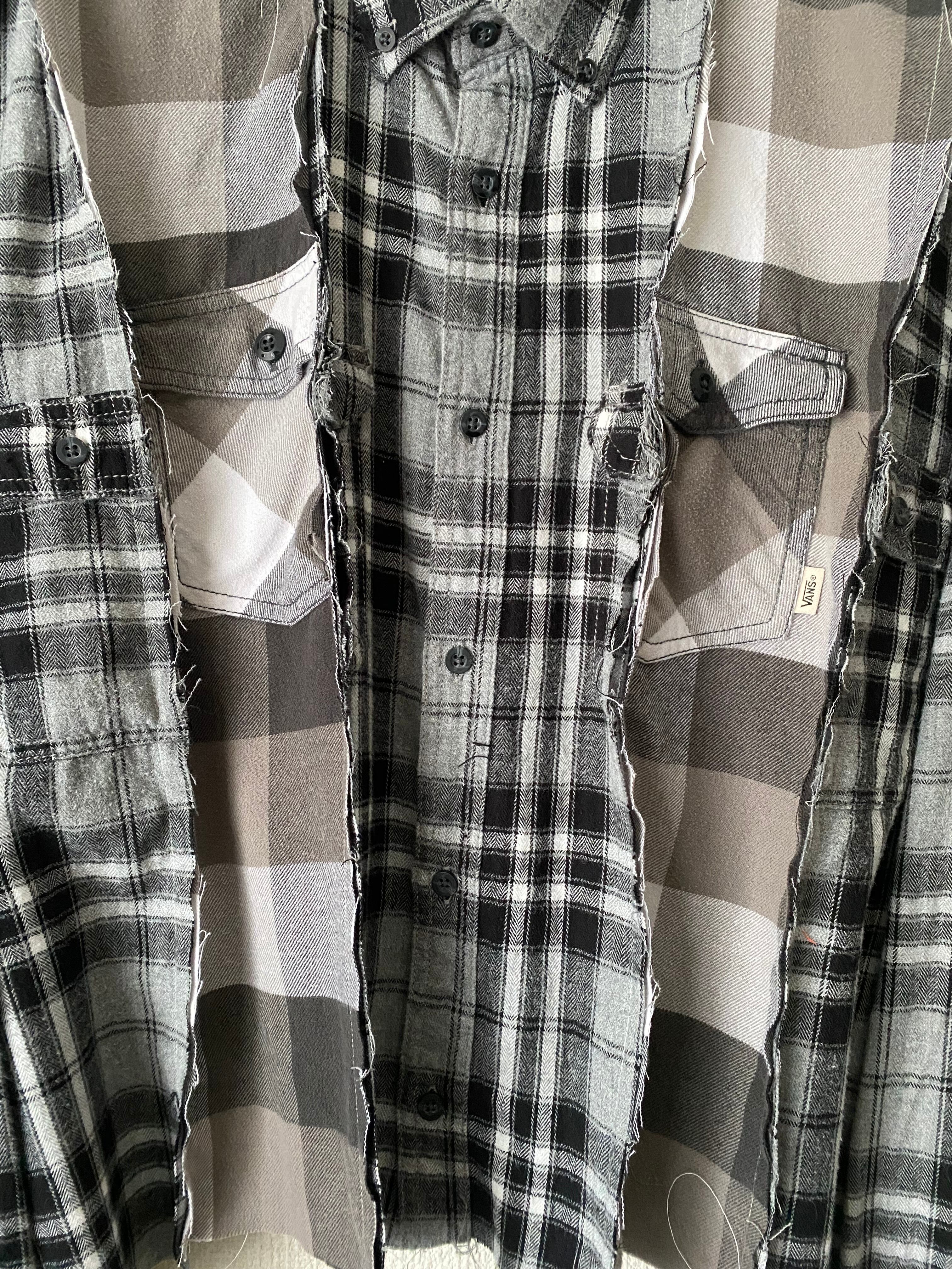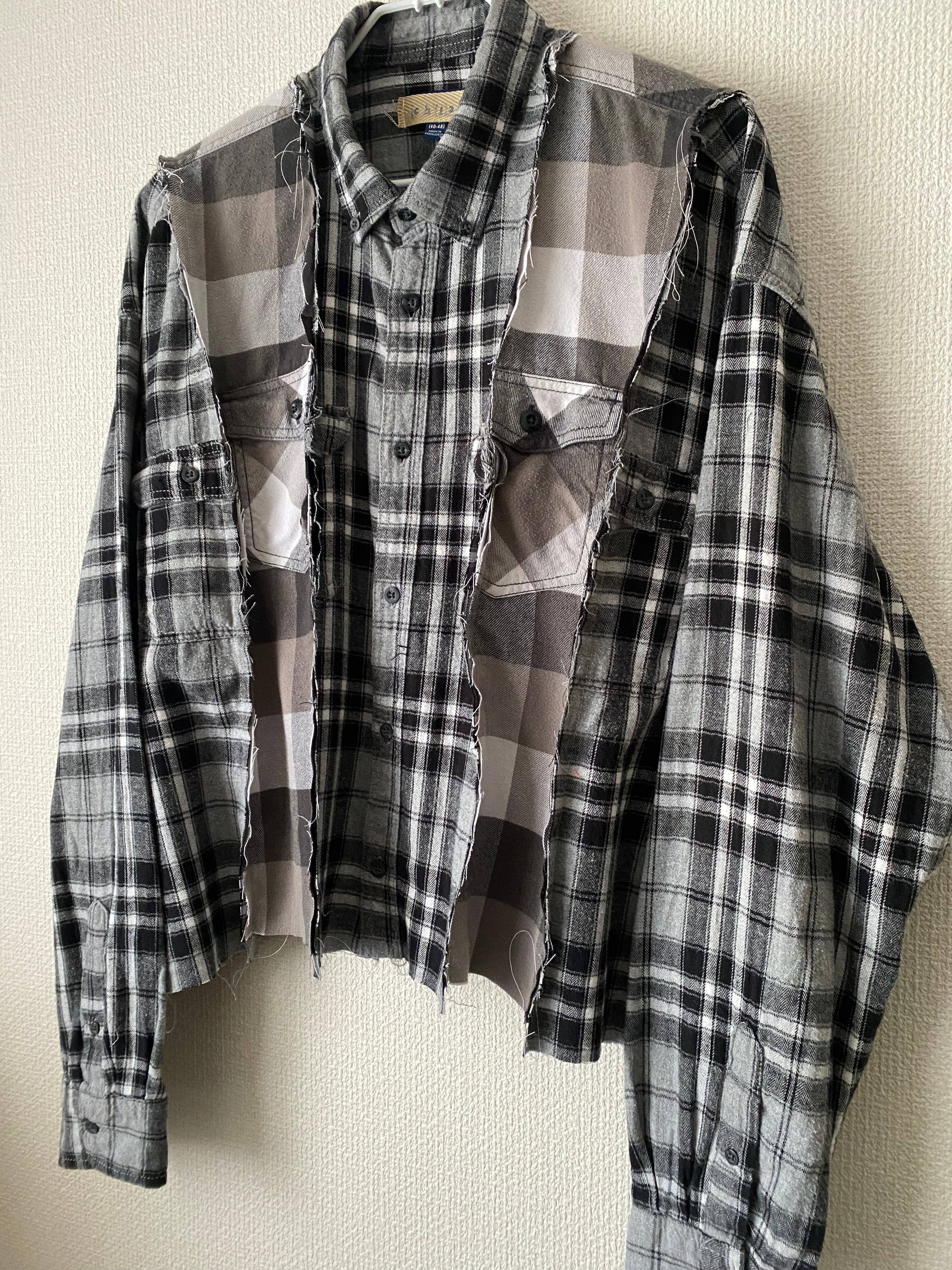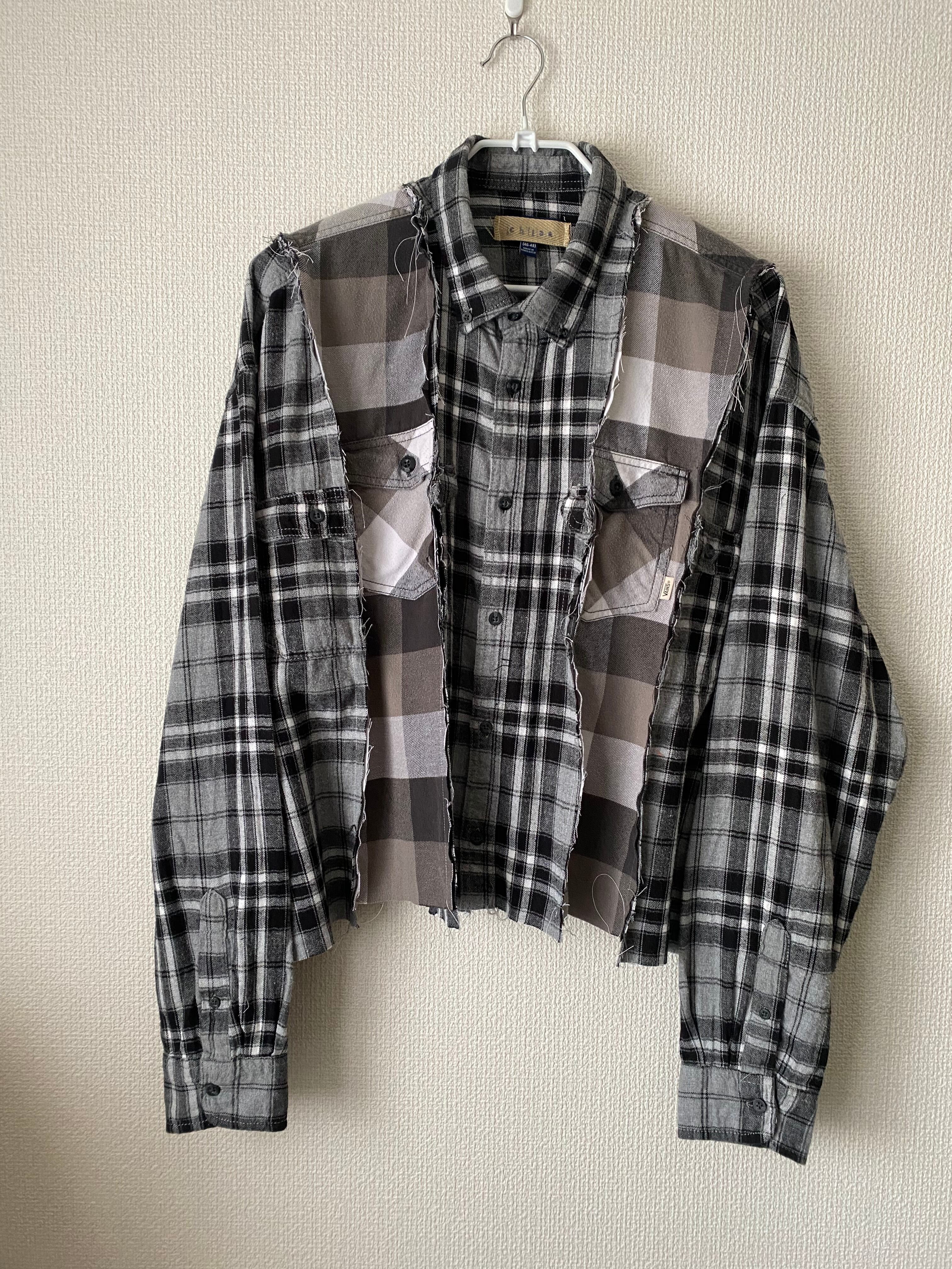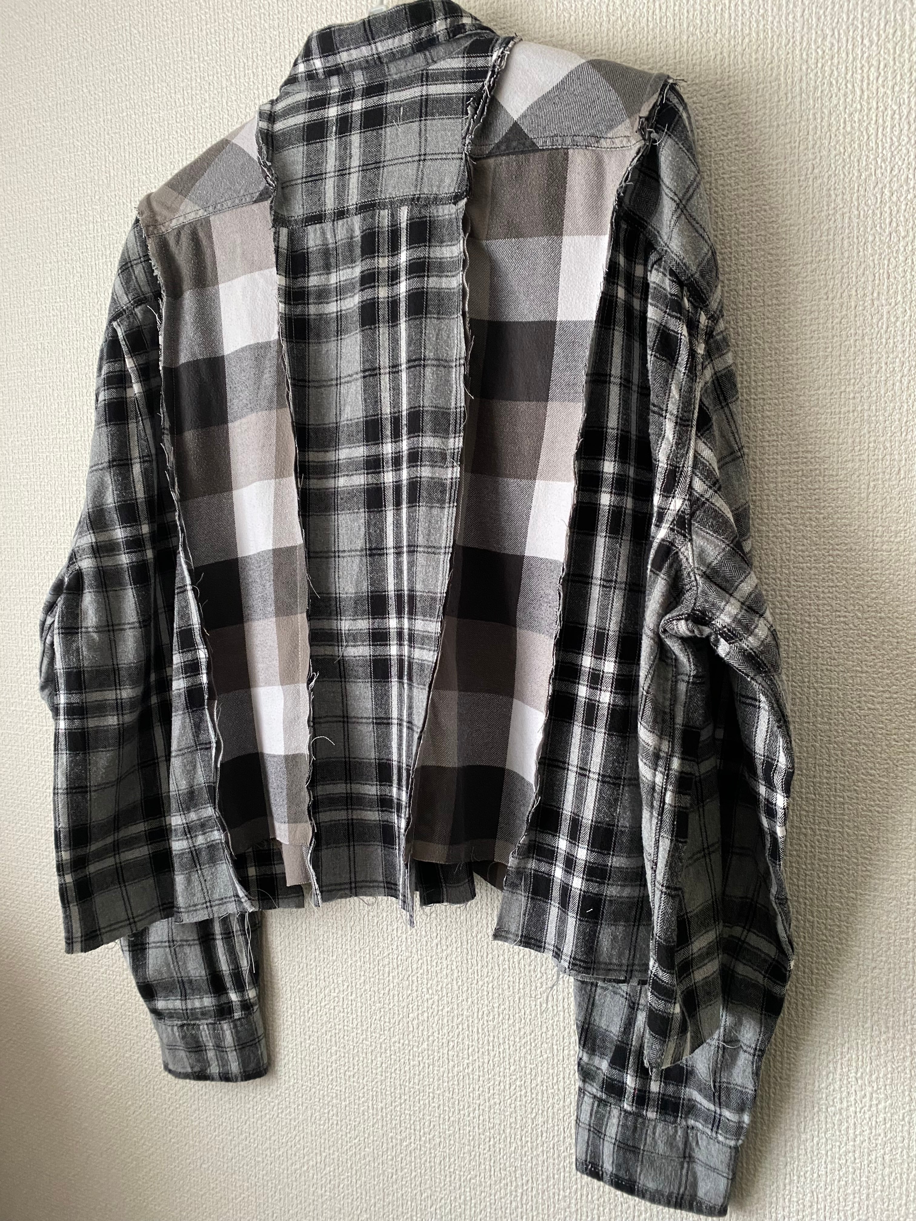 ネルシャツリメイクドッキングシャツ モノトーン