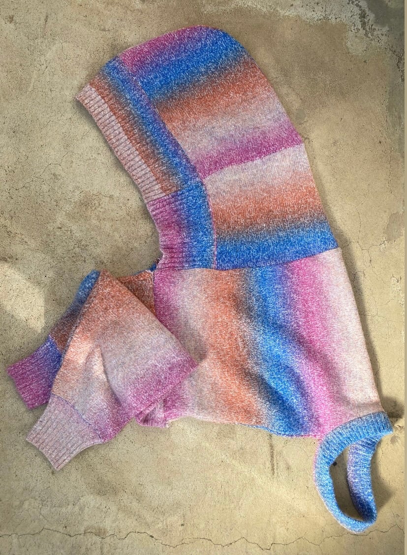 古着ニットセーターリメイク フード付袖ストール レインボー