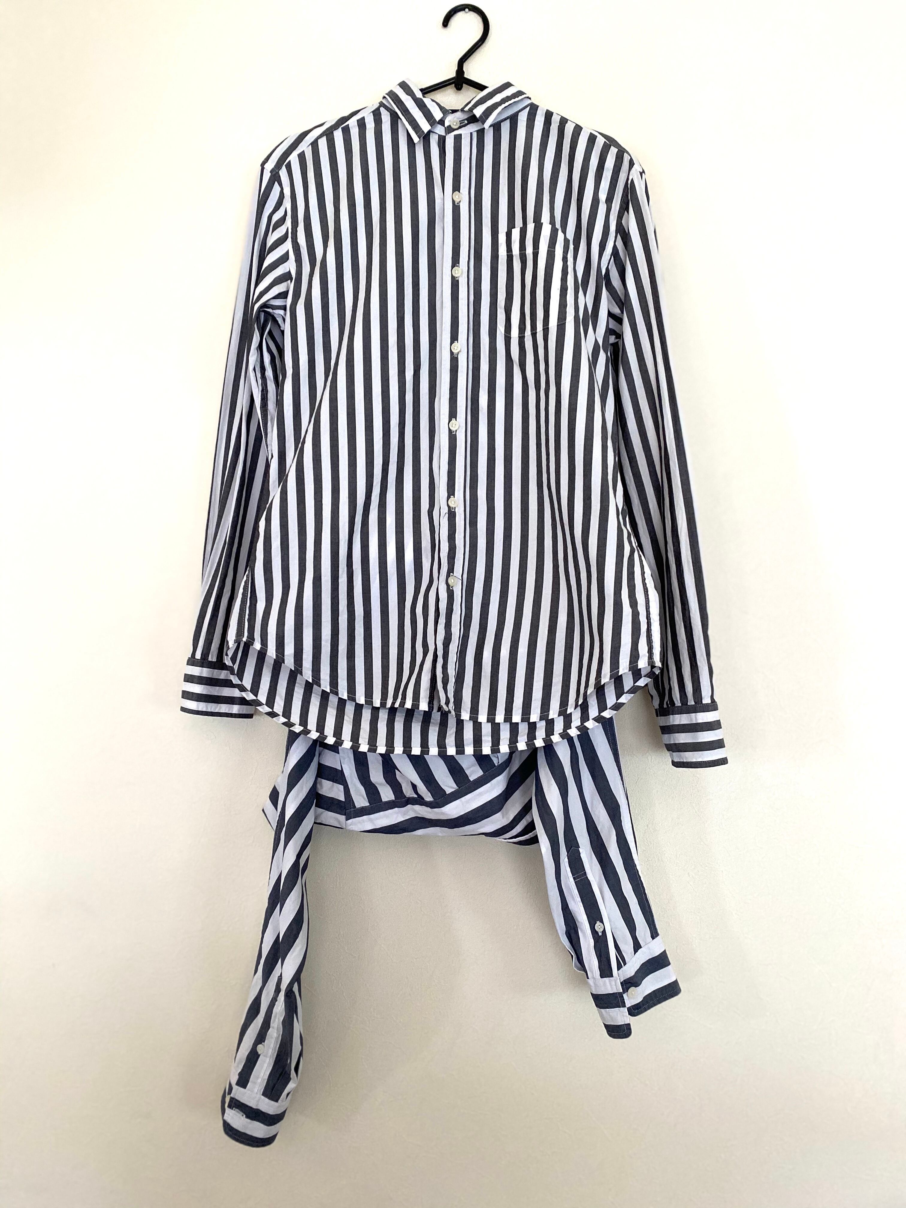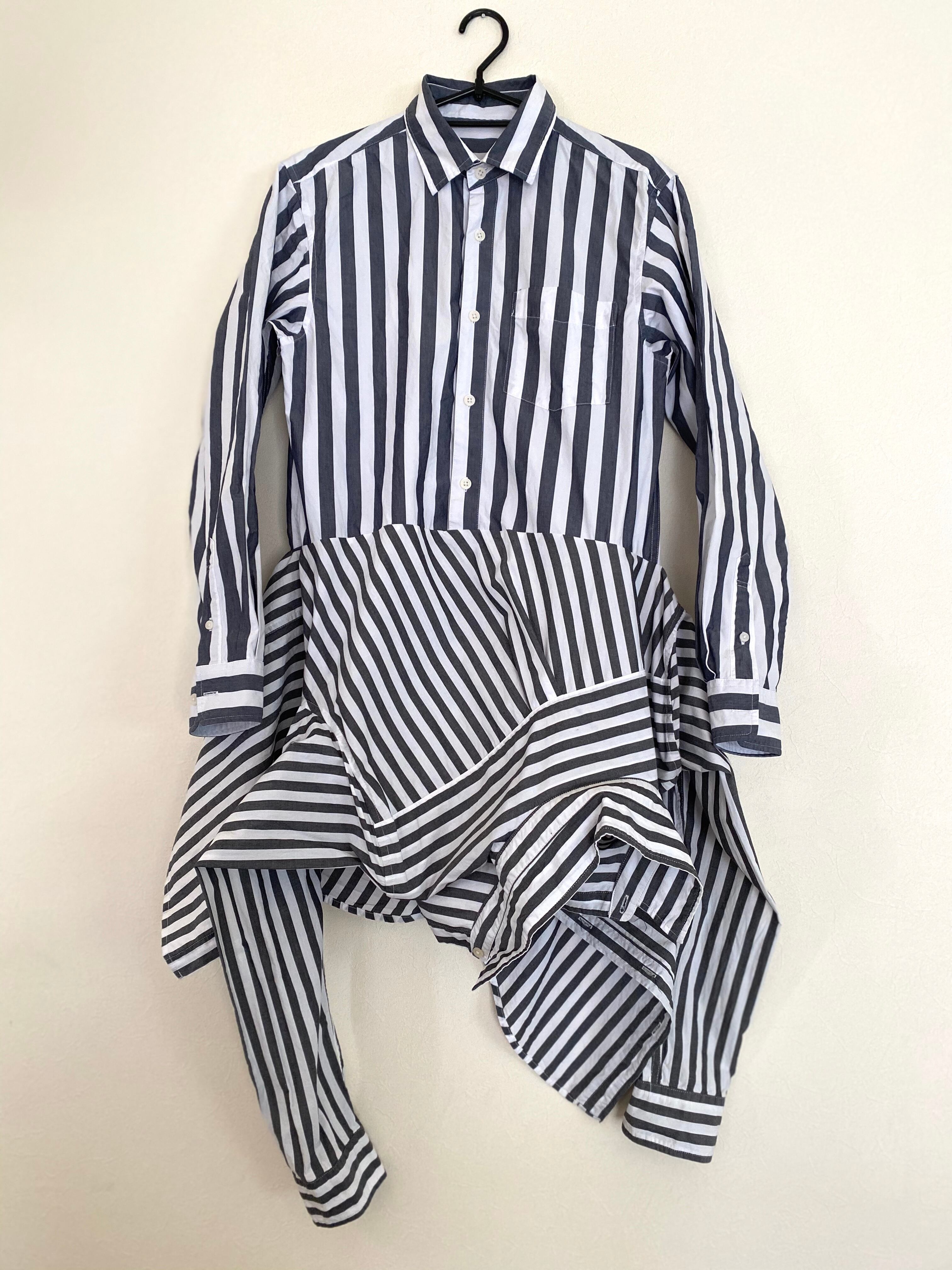 2枚のピッチの違うストライプシャツをドッキングしました。