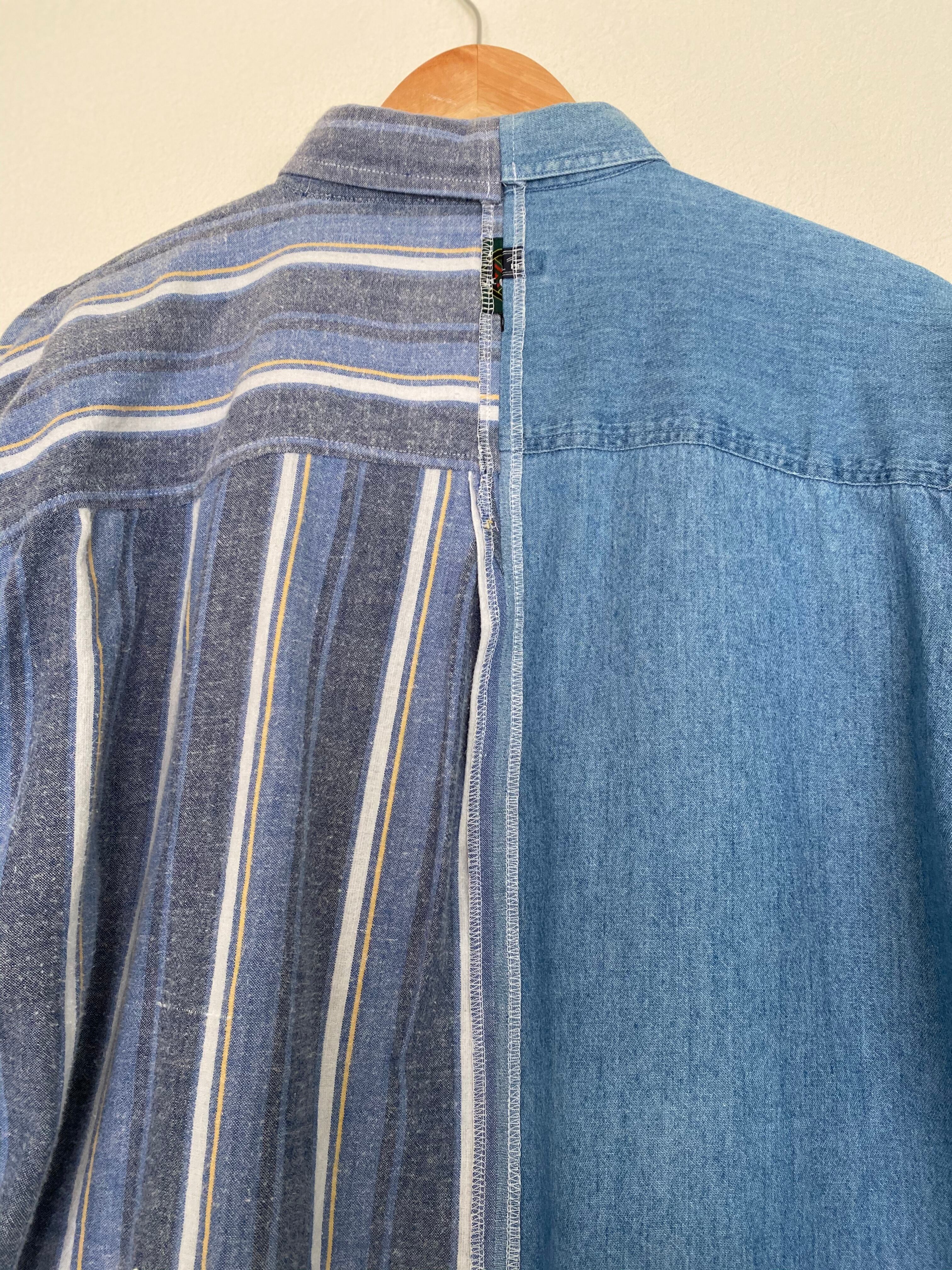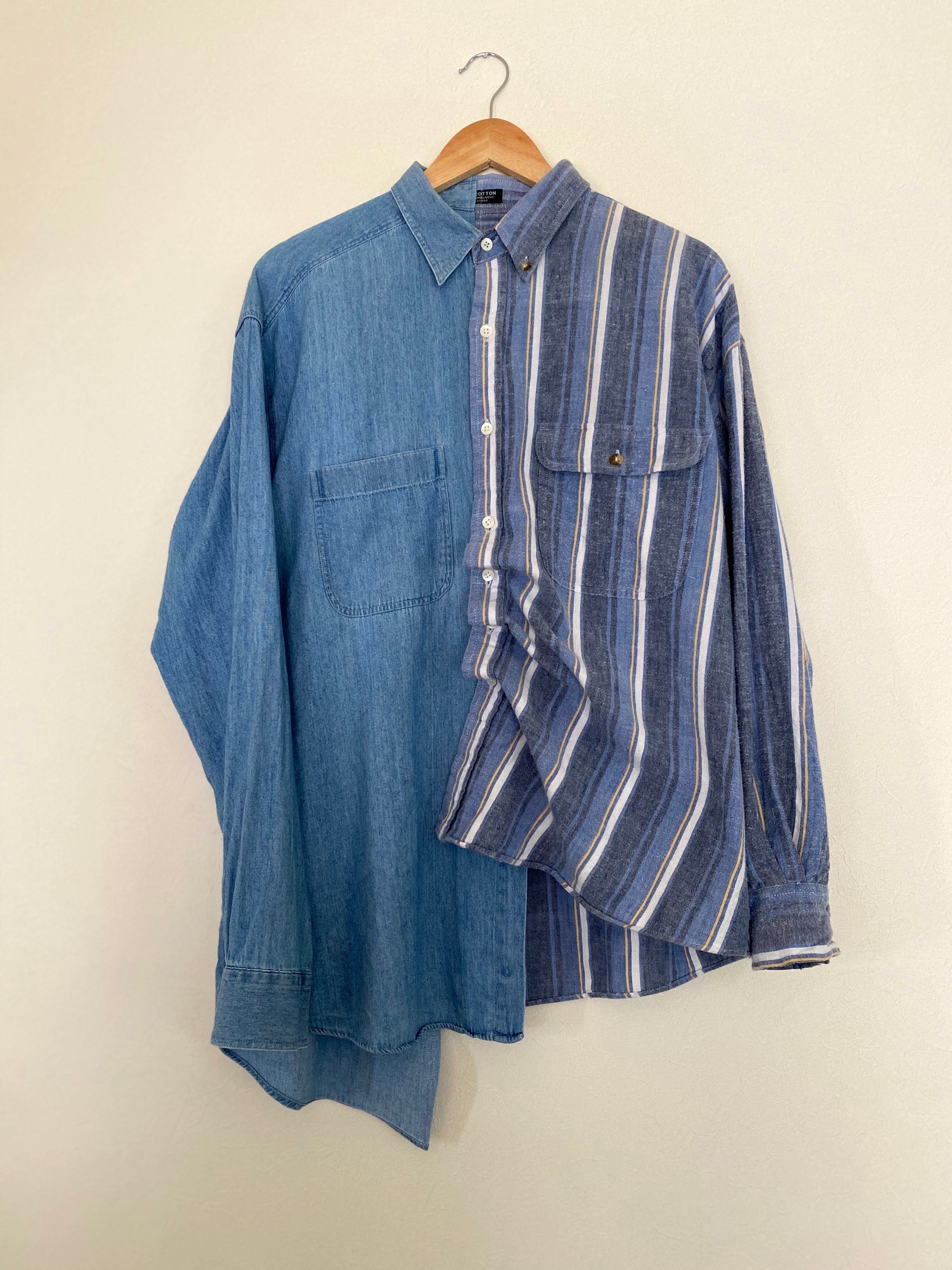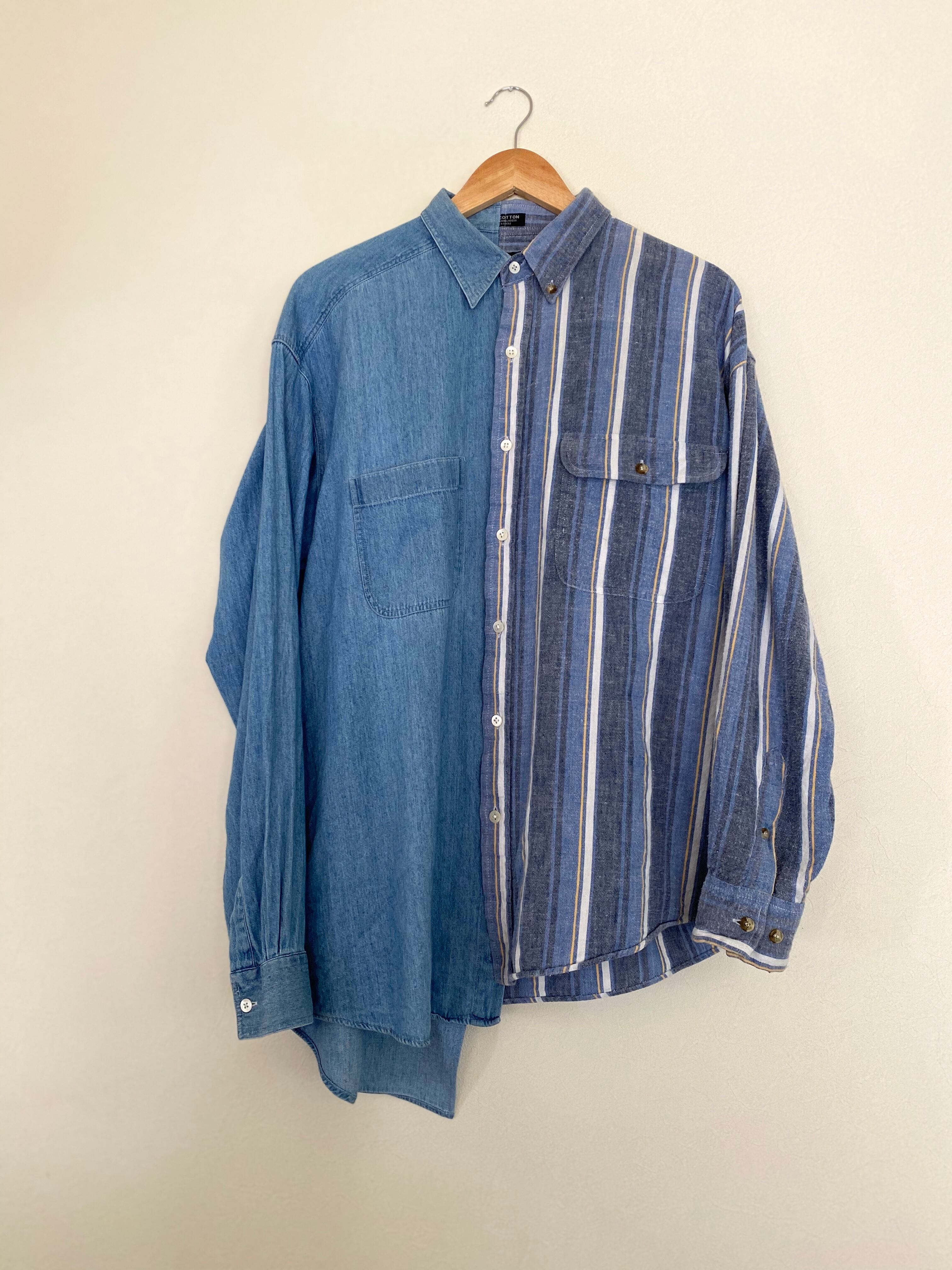 McREGOR のストライプシャツと軽めな生地厚のデニムシャツをドッキング。