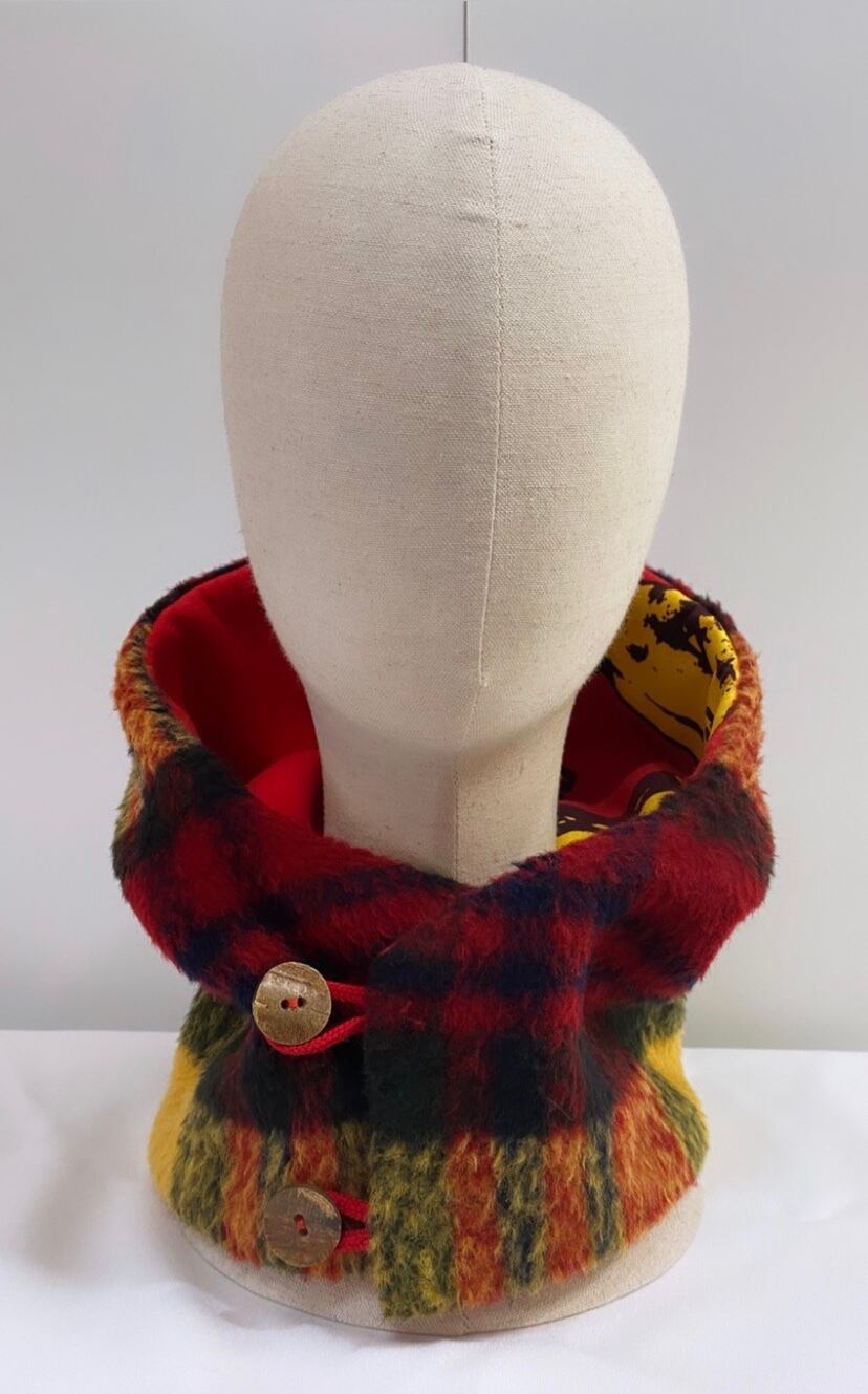 表は古着のスウェットをリメイクしたリバーシブルのネックウォーマーです。