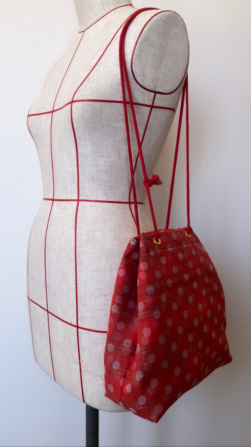 チェック✖️ドット巾着バッグ レッド