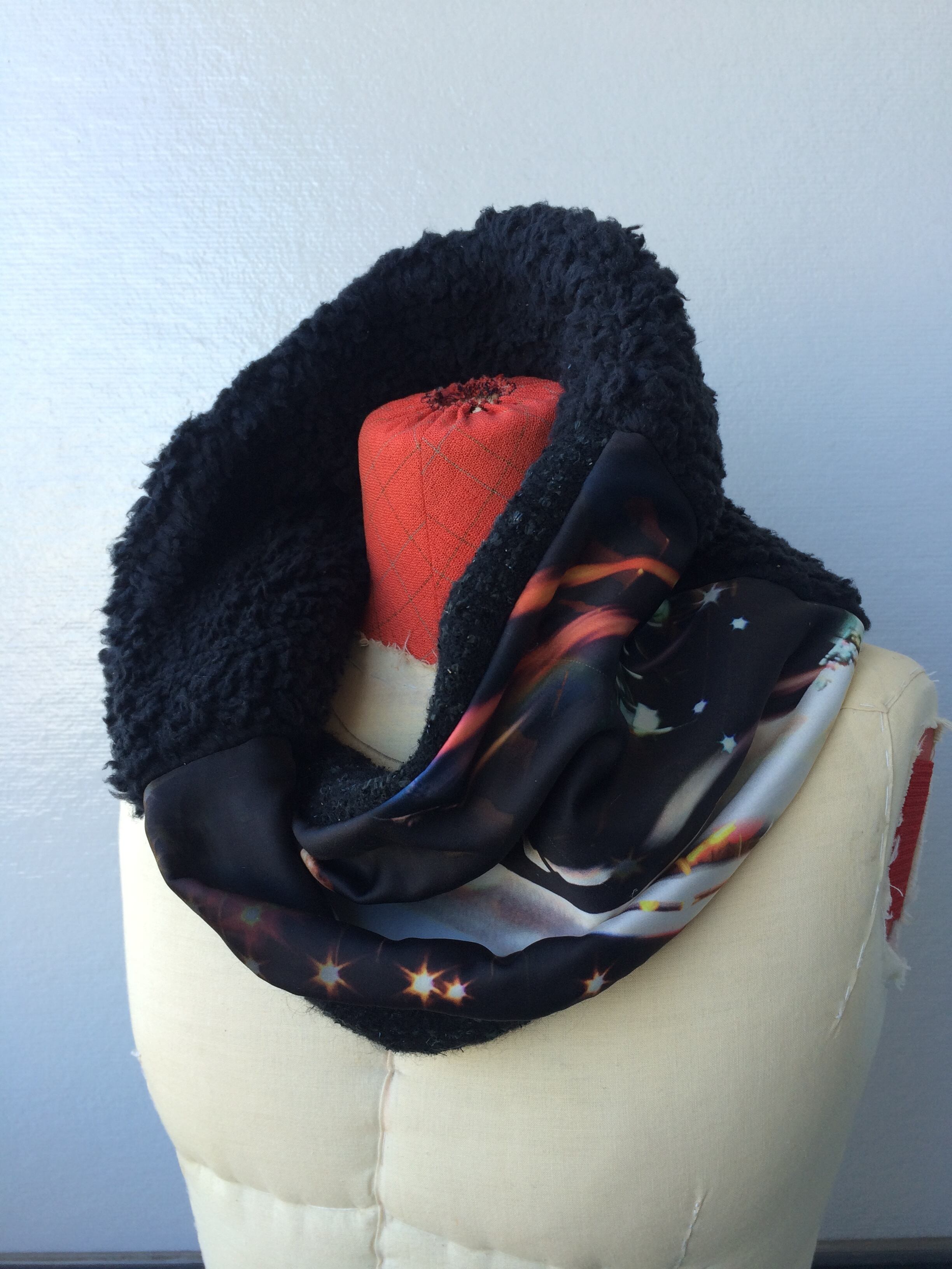 夜景を写した写真が転写プリントされたスカーフからネジレスヌードを作りました。