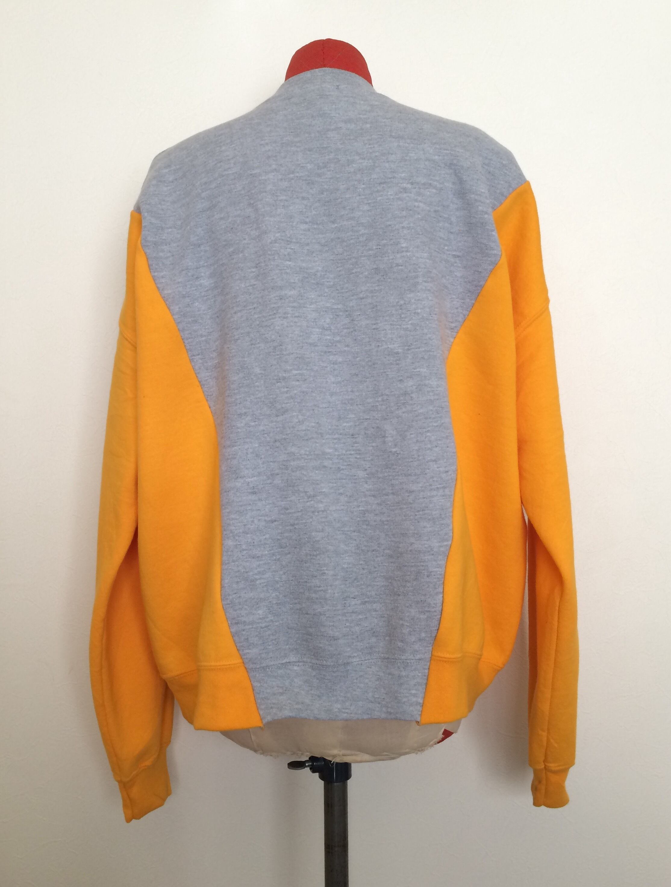 好きな配色、グレーとイエローのドッキングスウェットです。