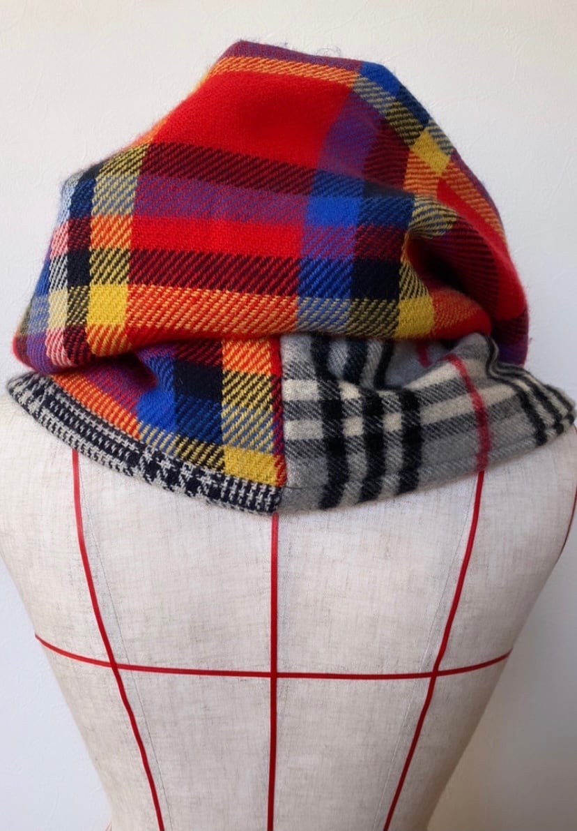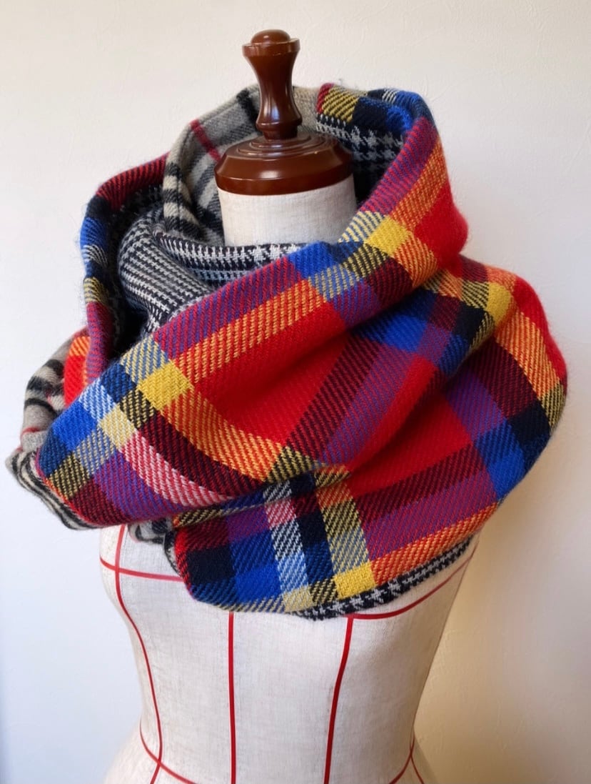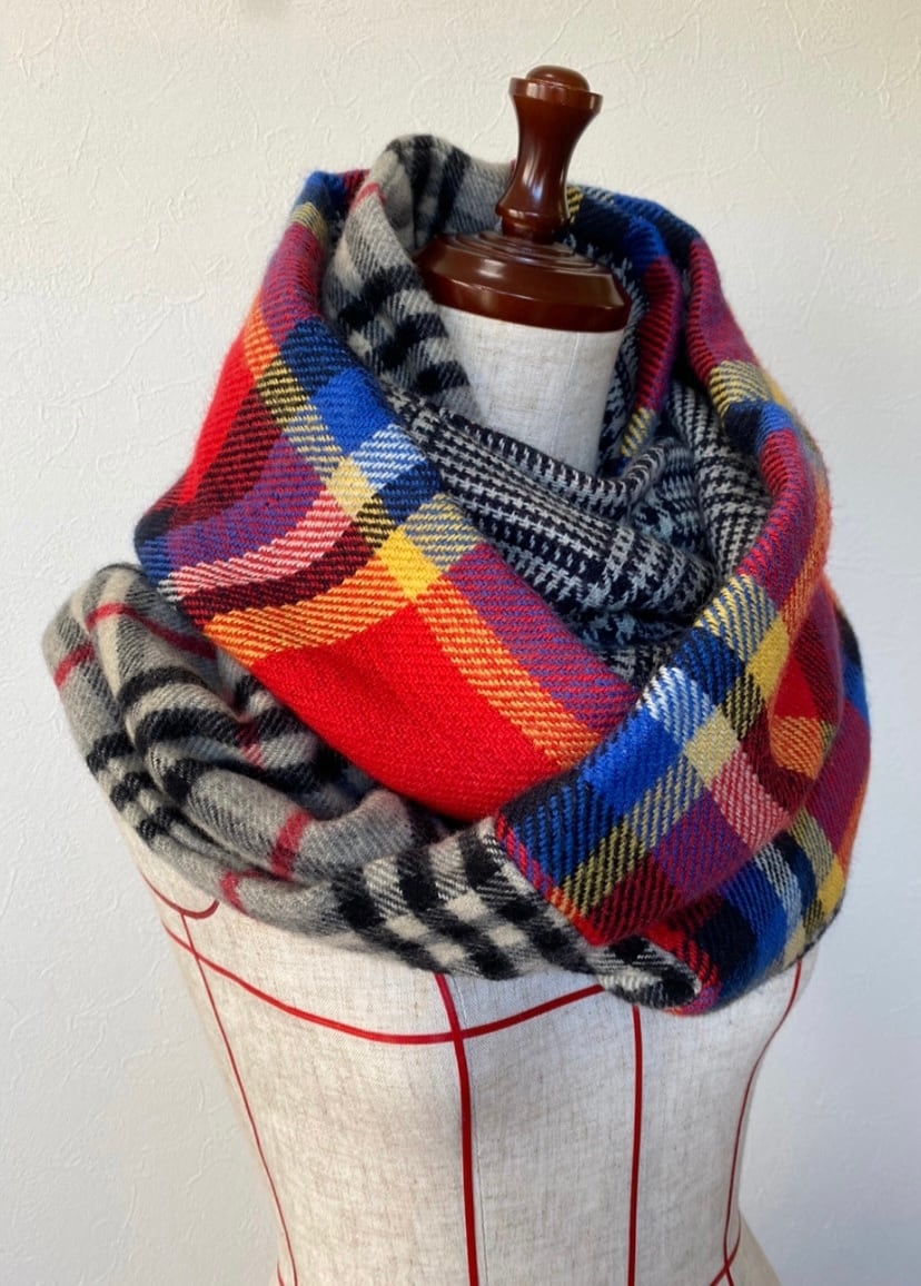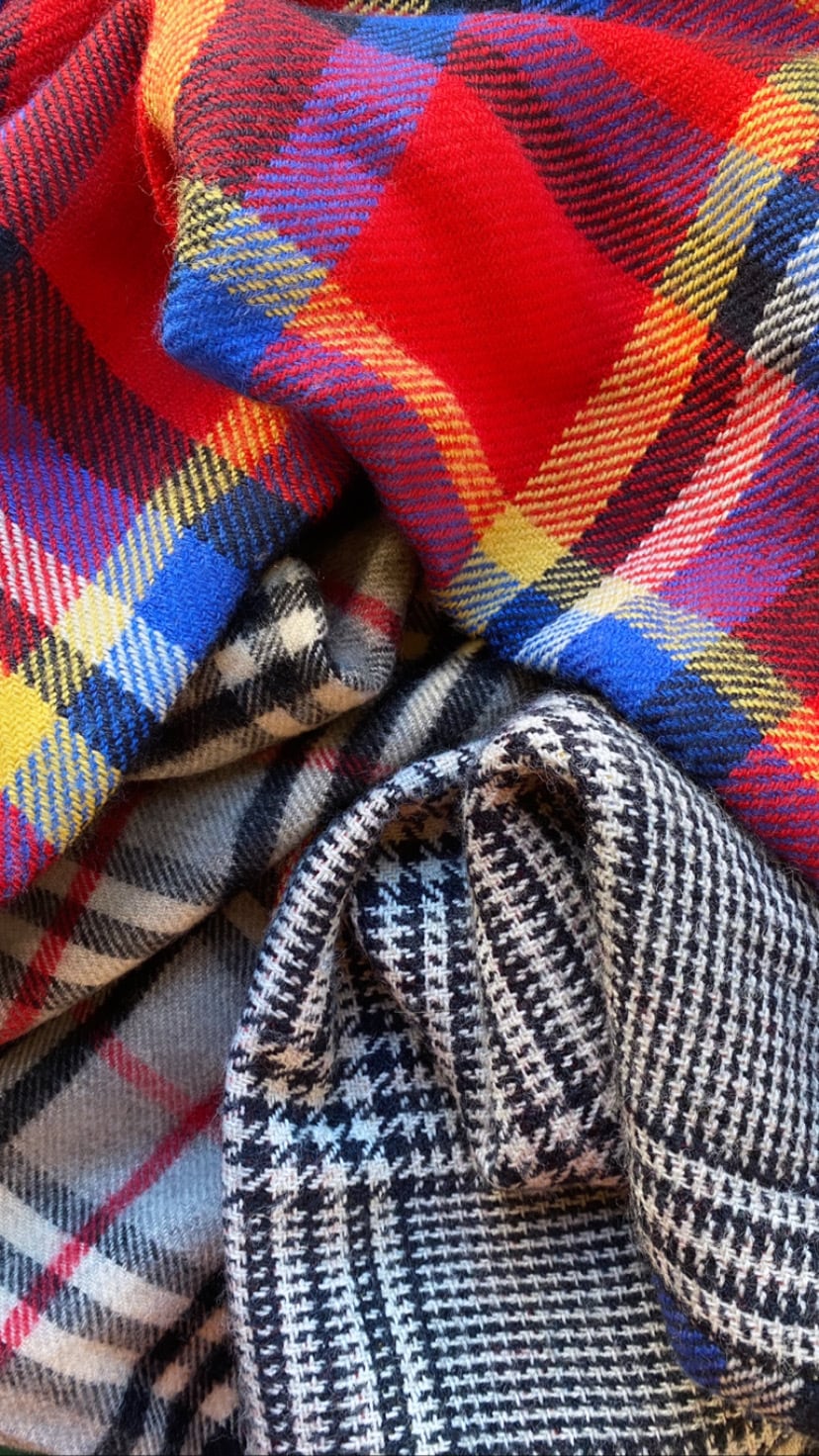 Burberryマフラーを元に3種類のチェック柄をミックスしてリメイクしました。