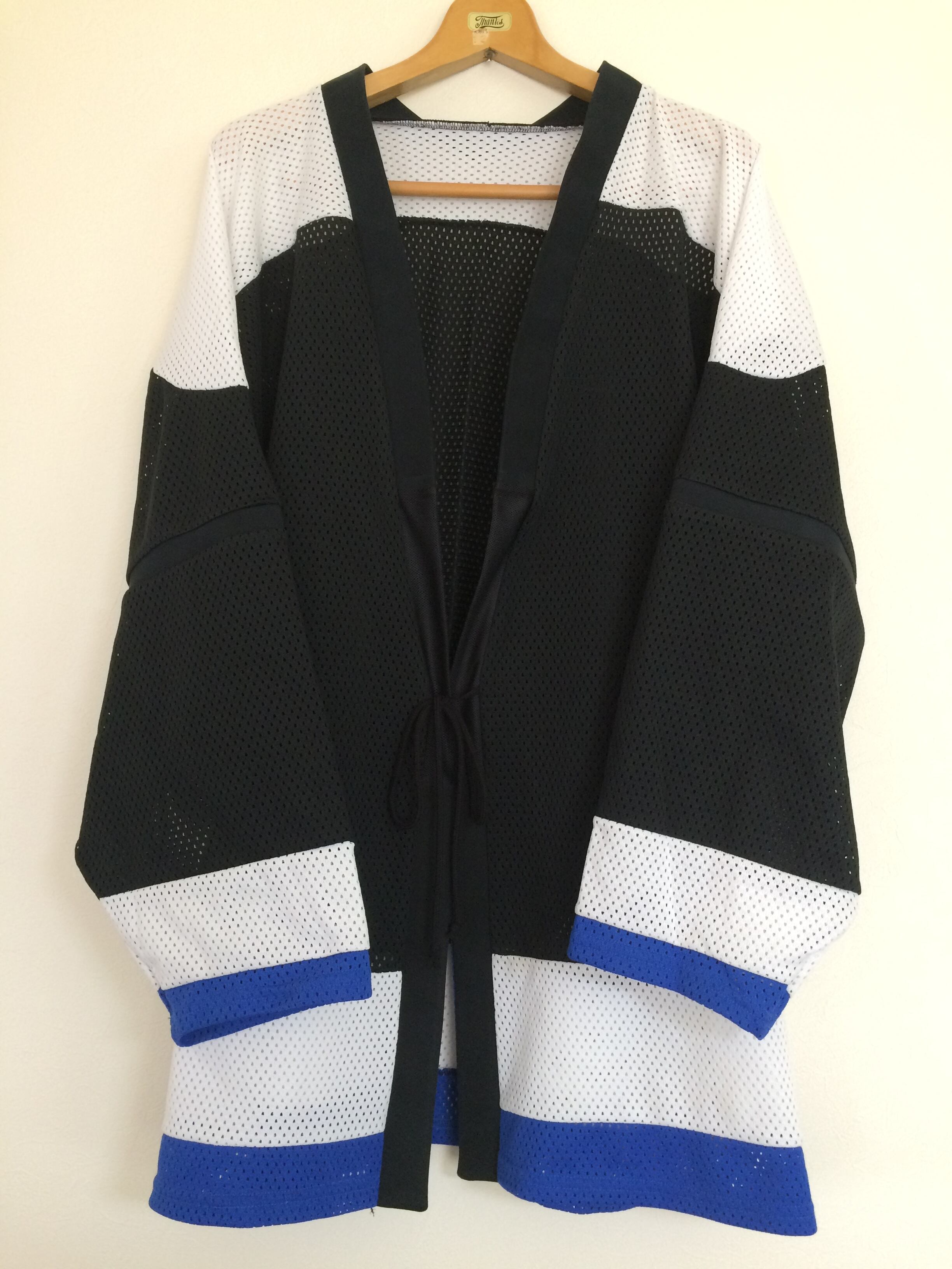 袖は長かったので短くして、ポイントになるようにリブ素材で切り替えました。
