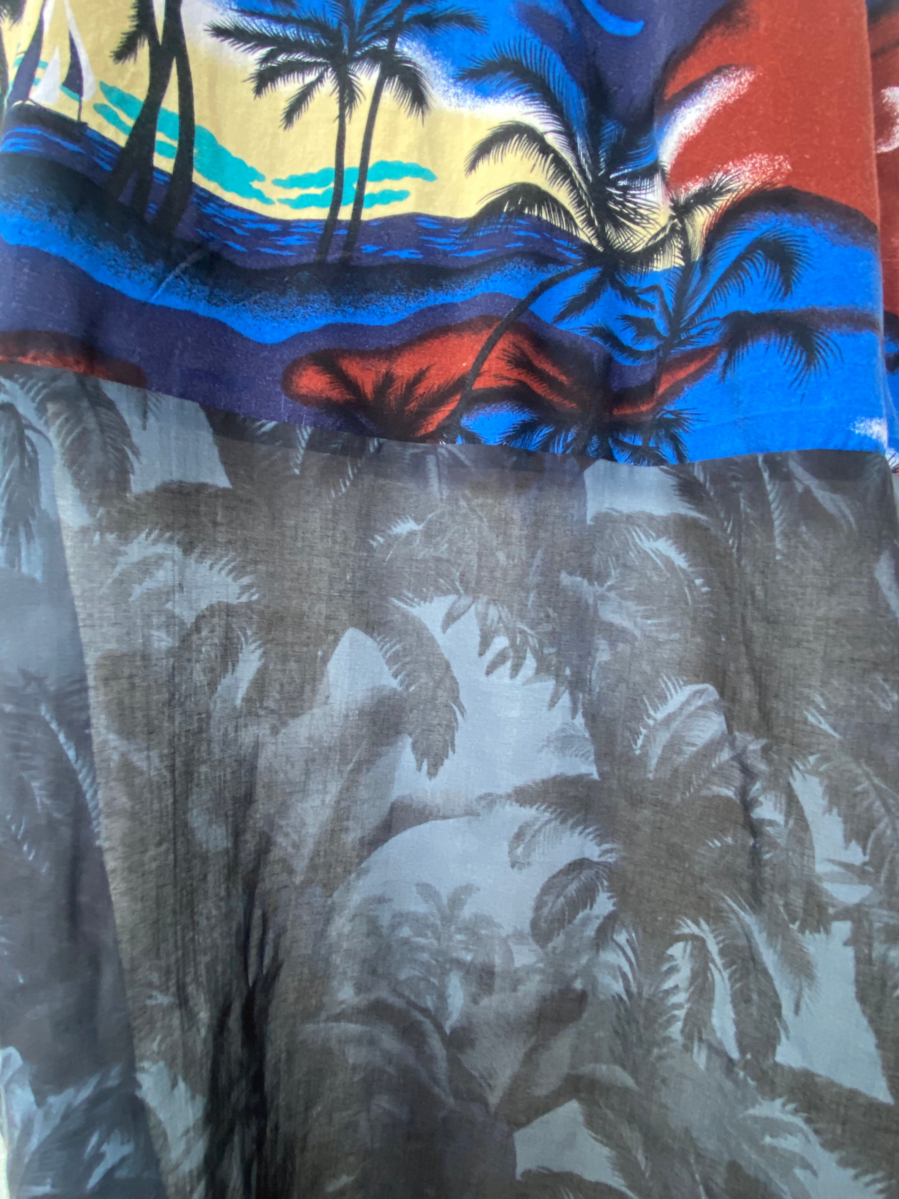 透け感のある椰子の木柄生地を、後ろの裾にだけプラス