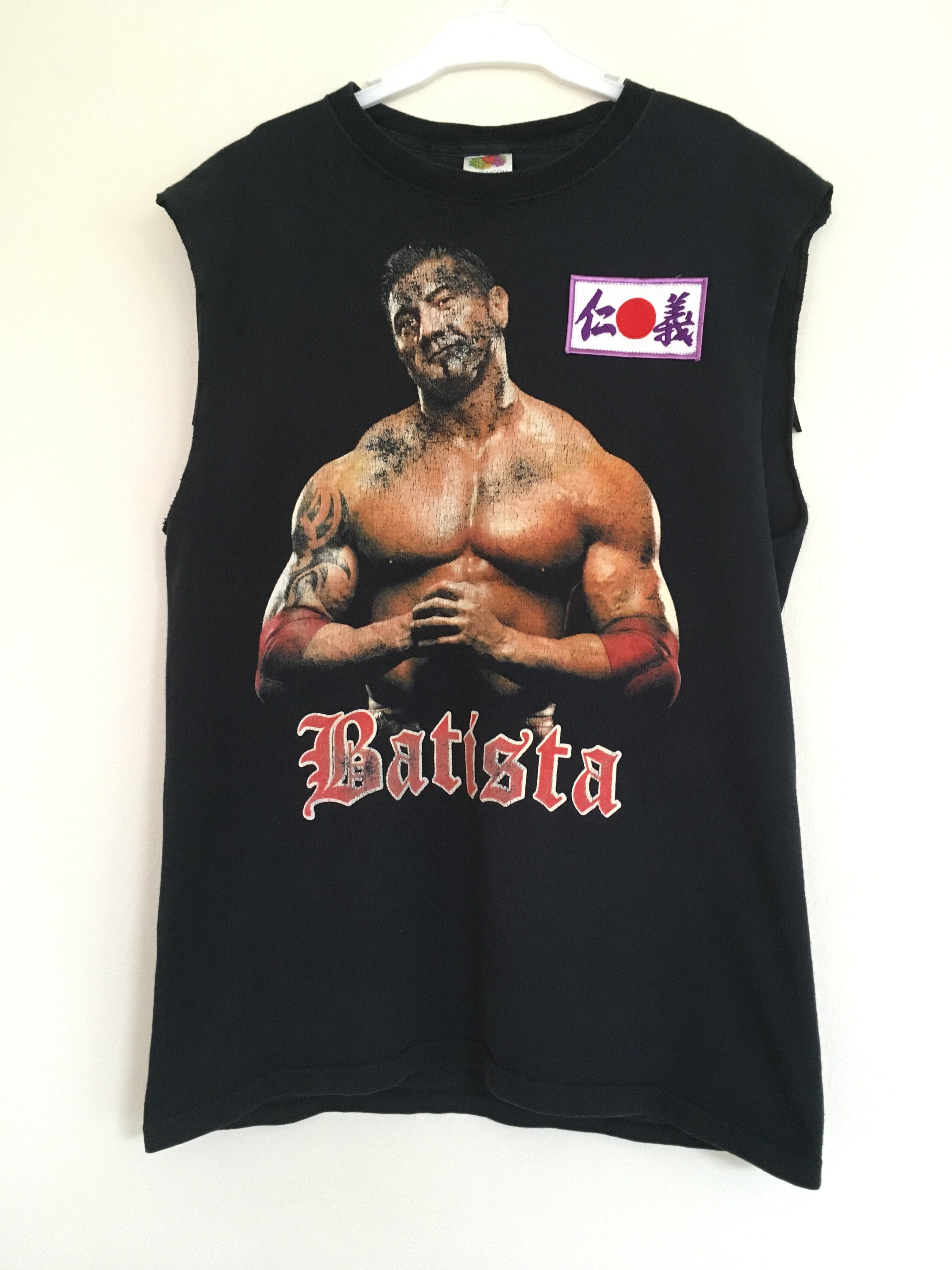 BatistaがプリントされたかっこいいTシャツをさらにかっこよくするために、袖をカットオフして、