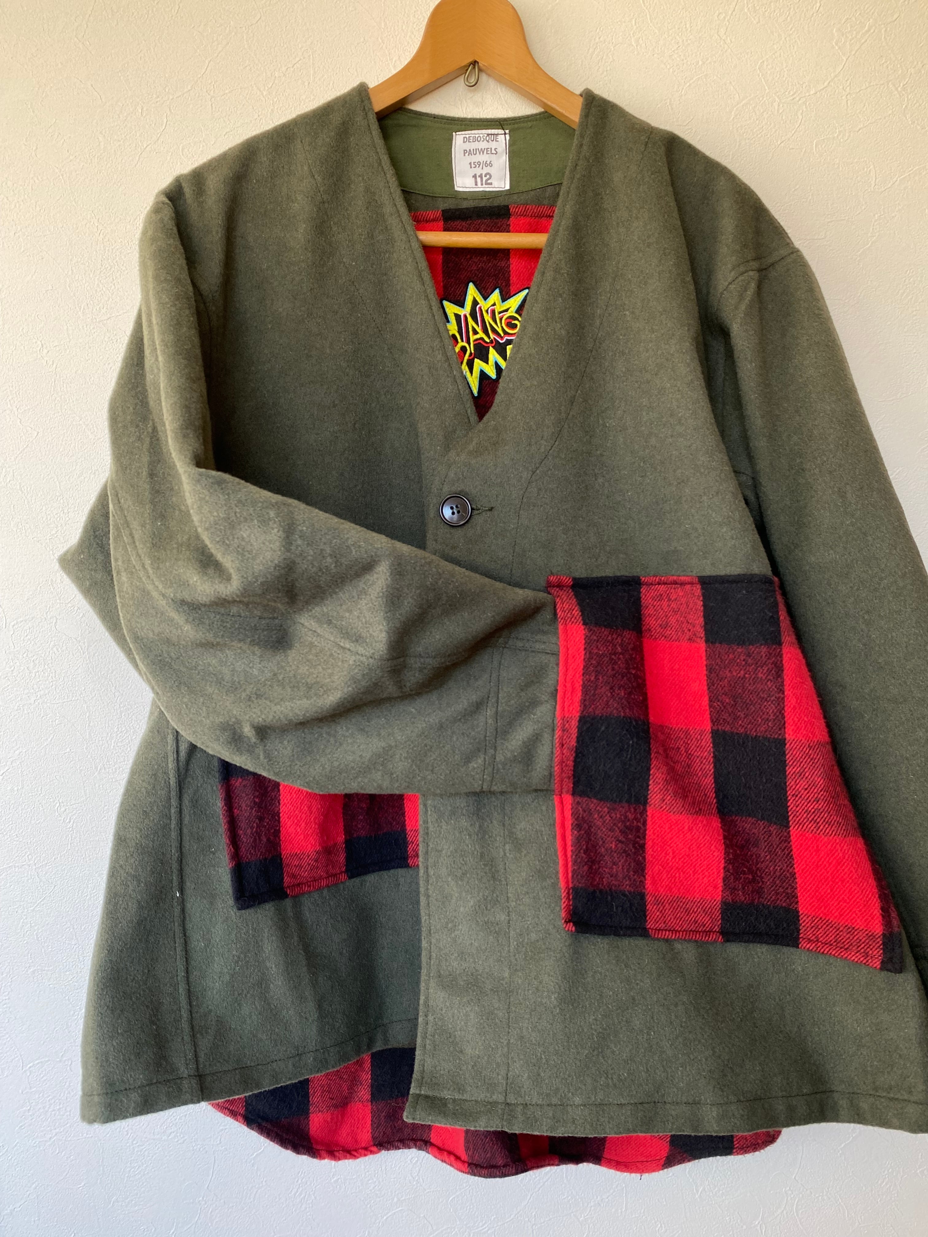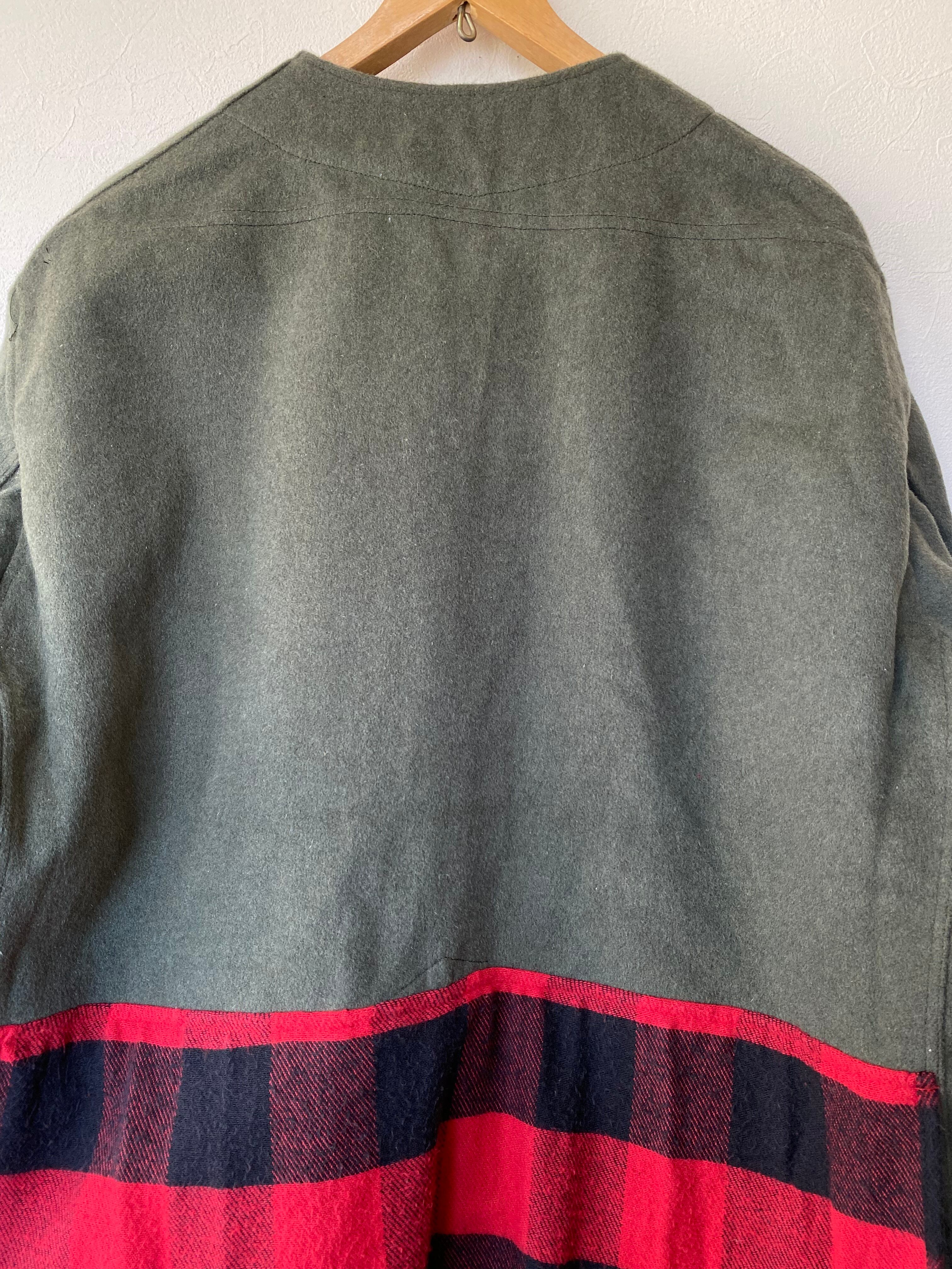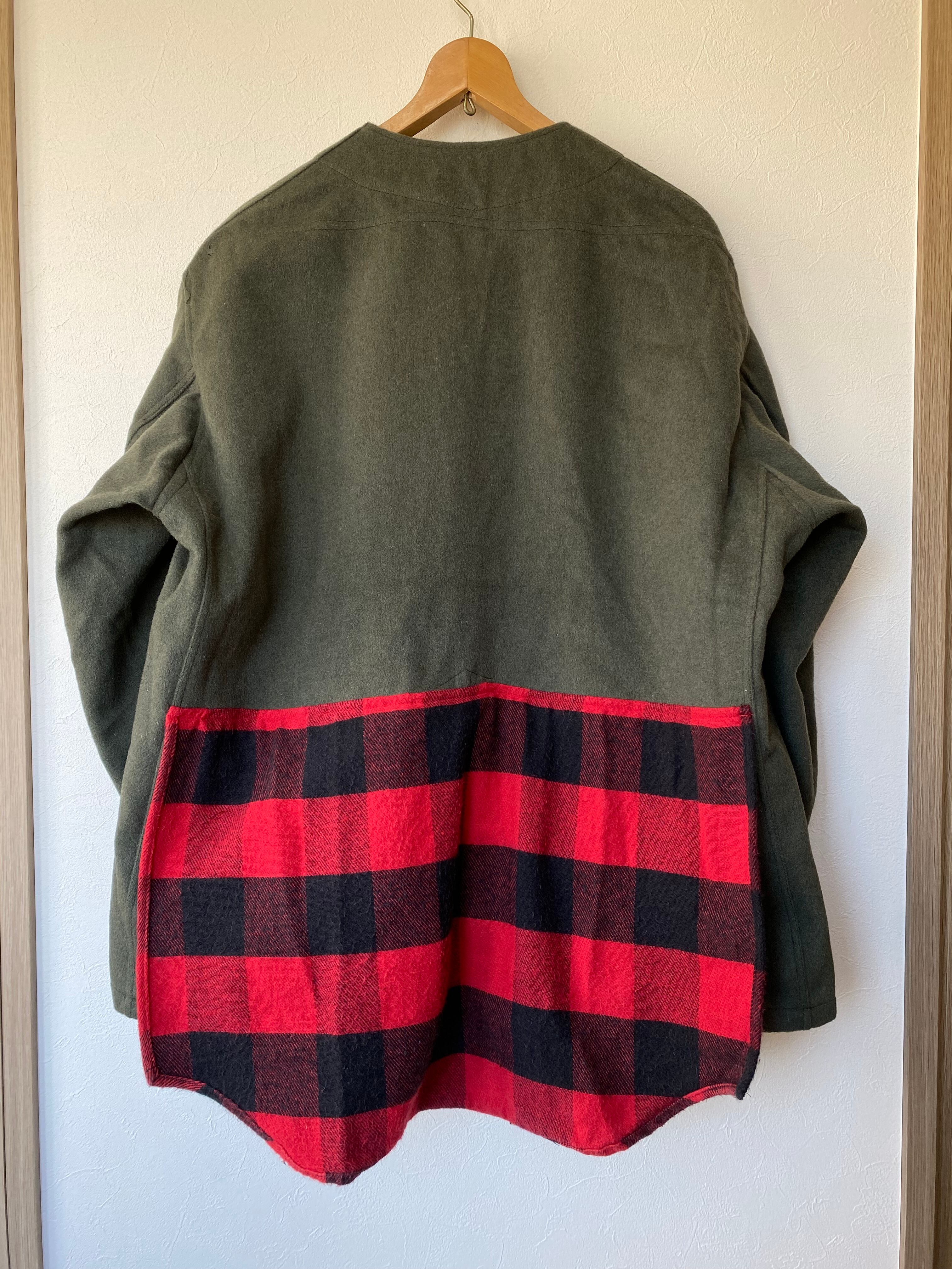 ヴィンテージのフェルトコートにバッファローチェックのネルシャツを分解して縫い付けました。
