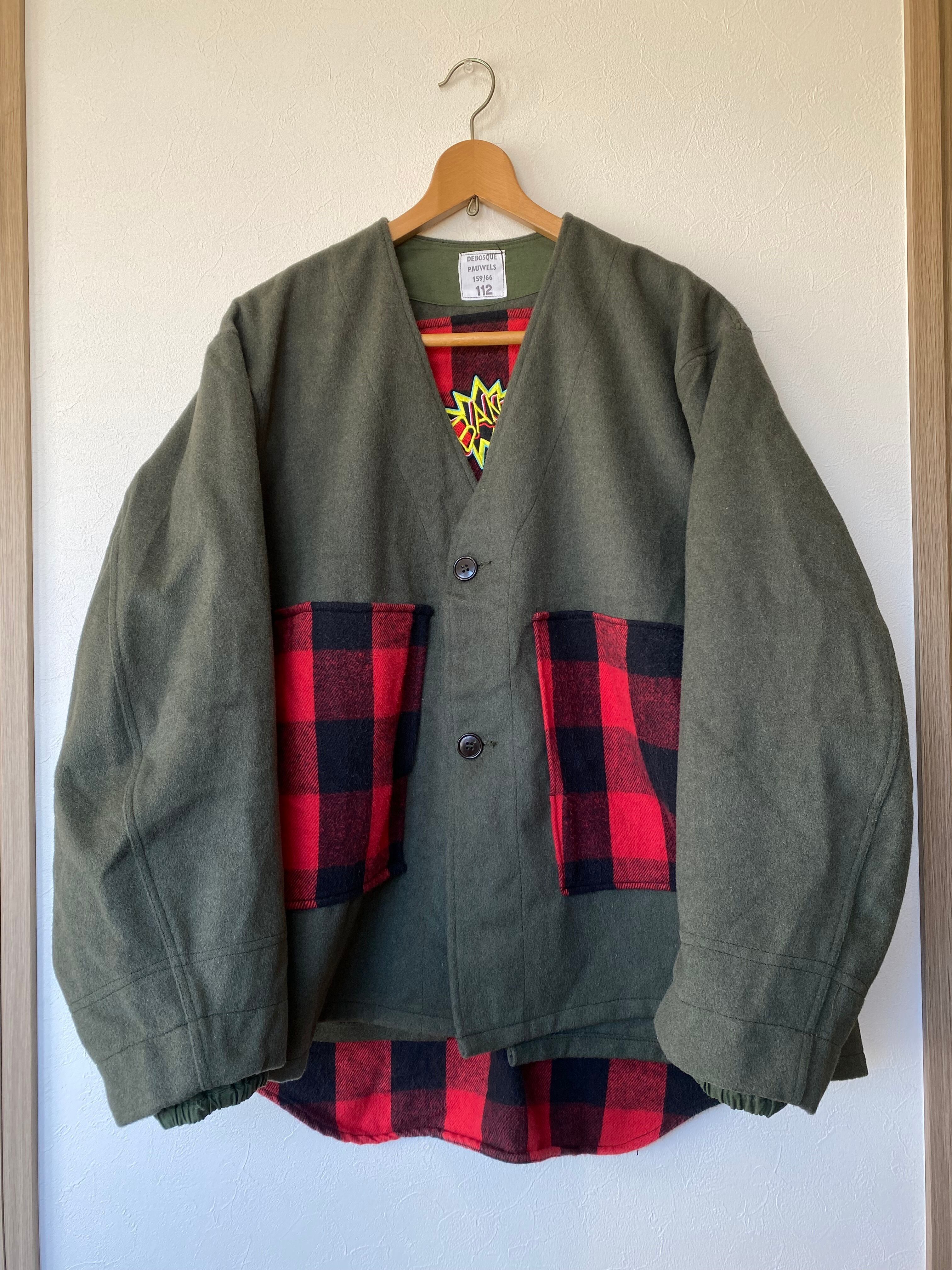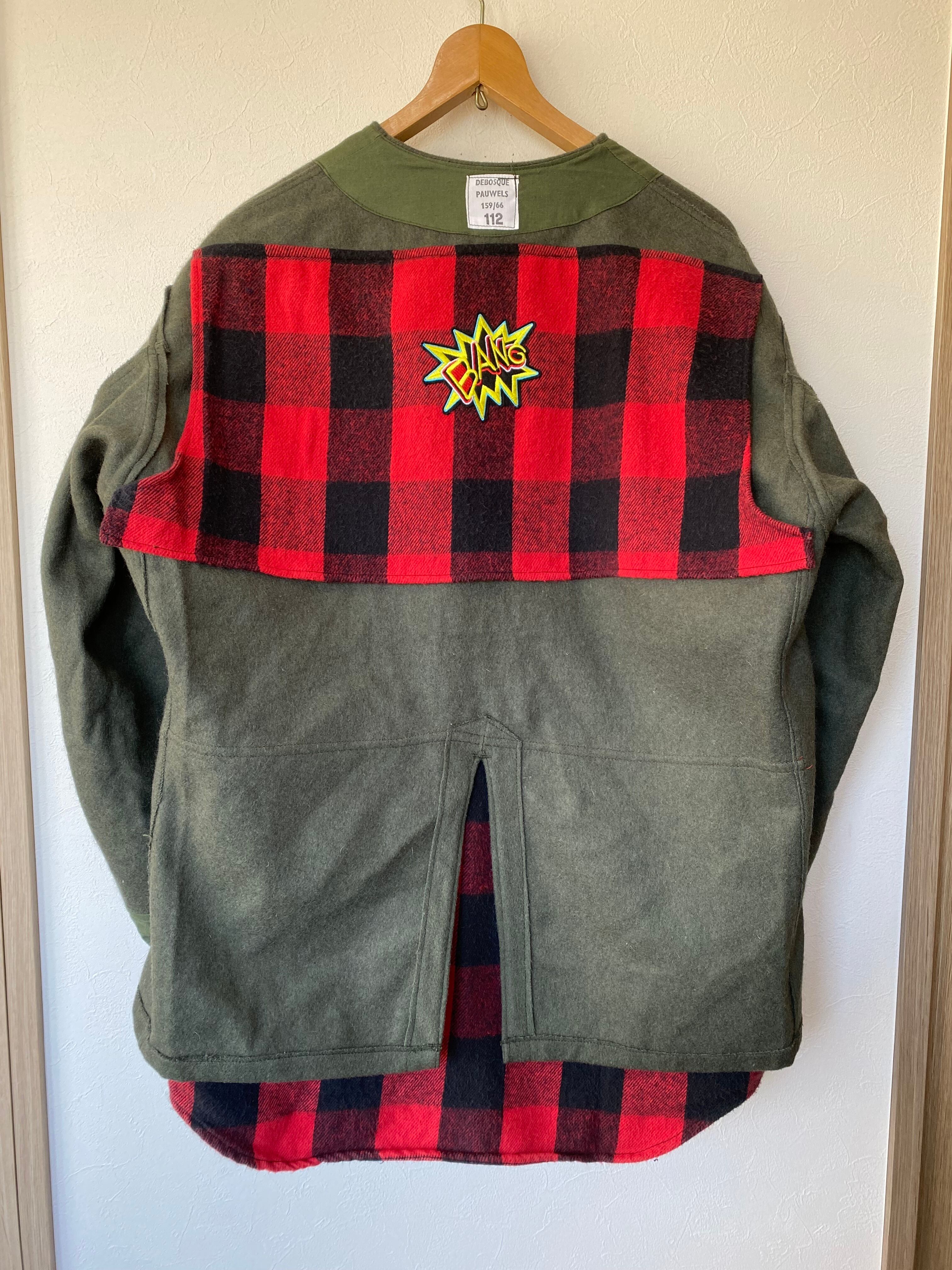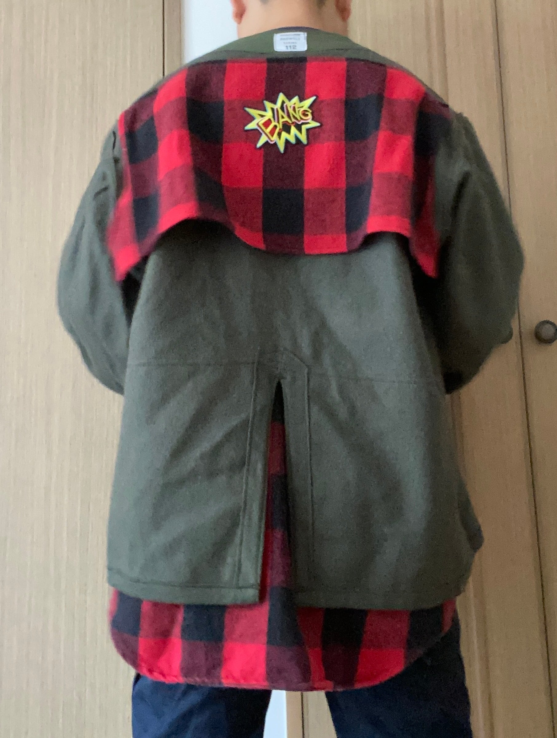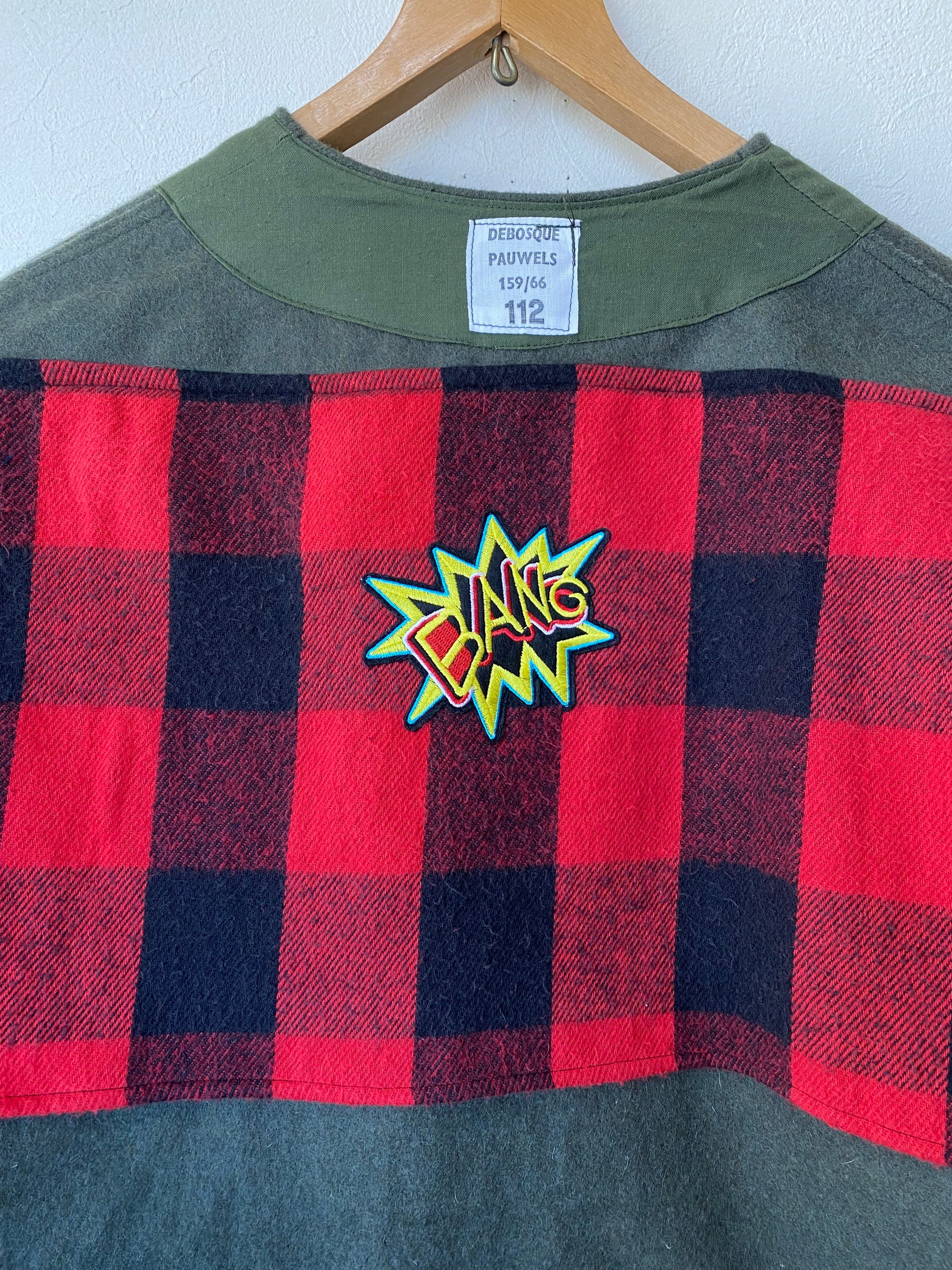 ヴィンテージのフェルトコートにバッファローチェックのネルシャツを分解して縫い付けました。