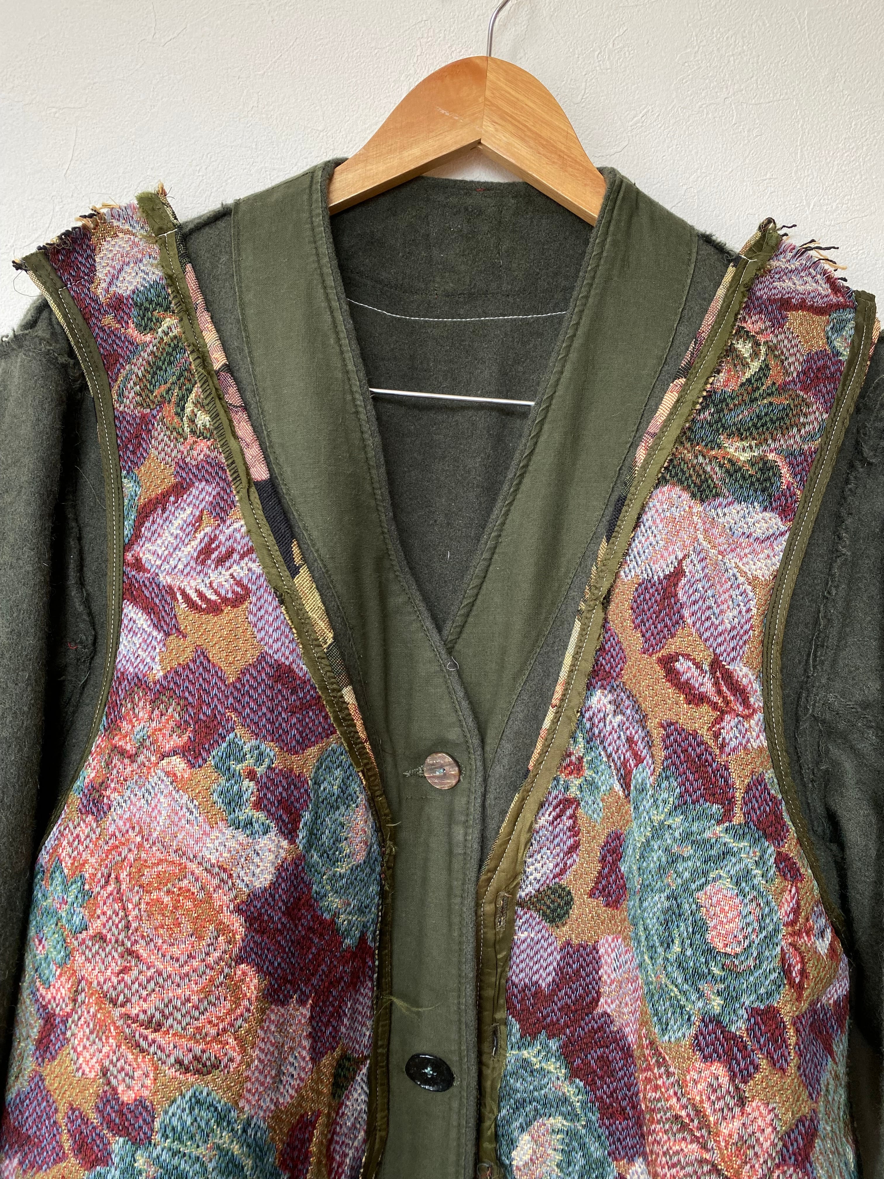 ゴブラン織ベストドッキングフェルトコート