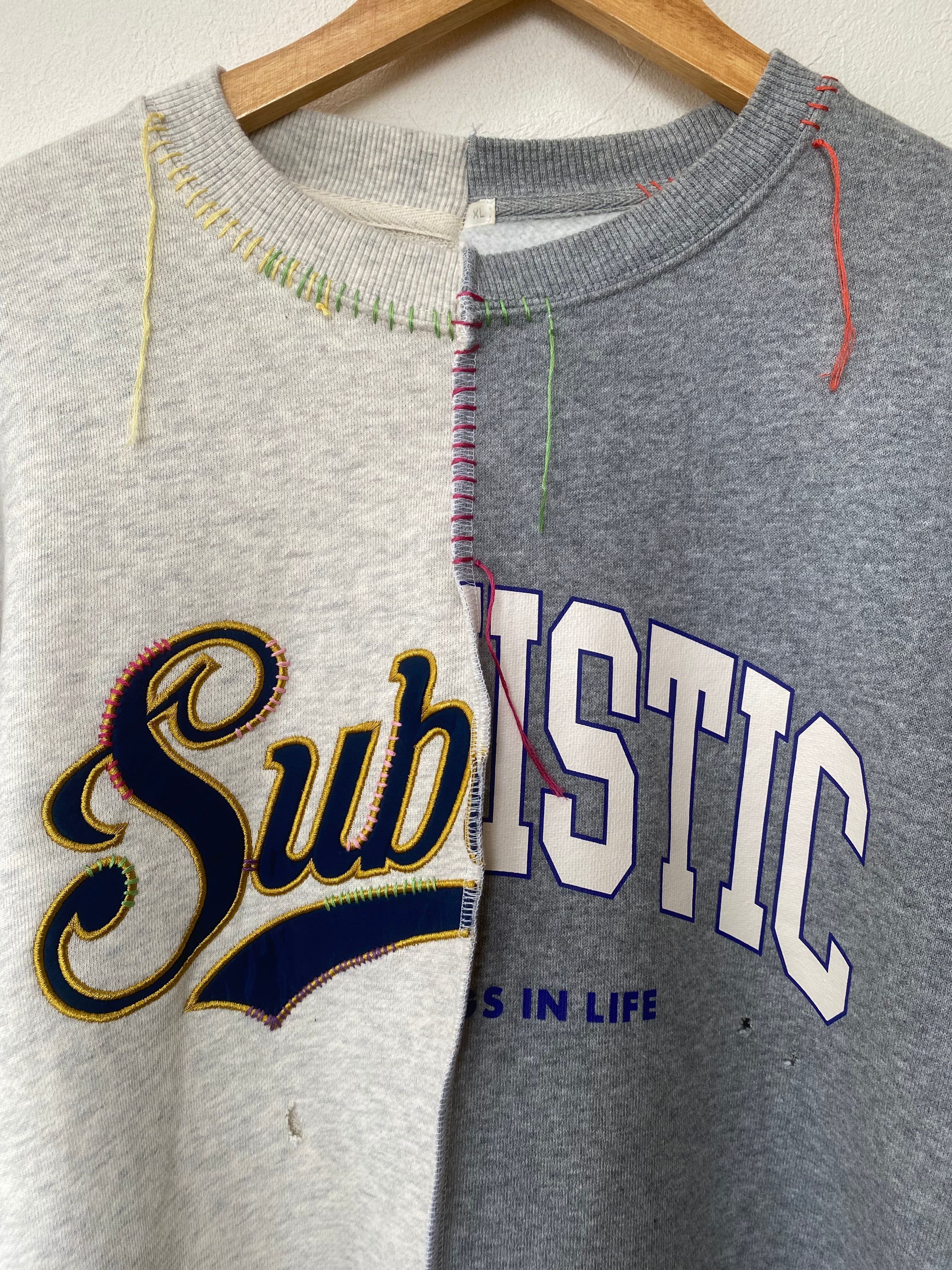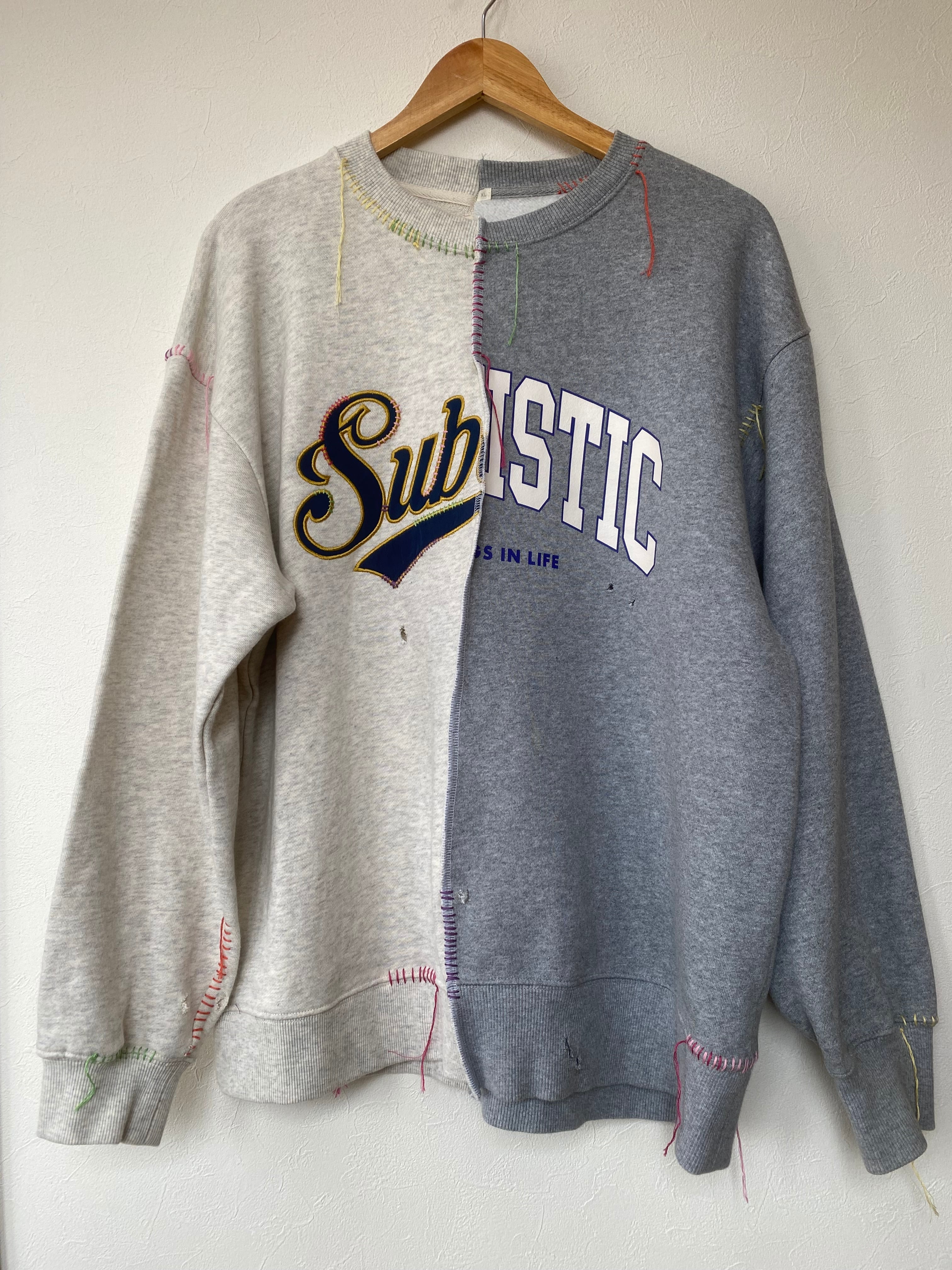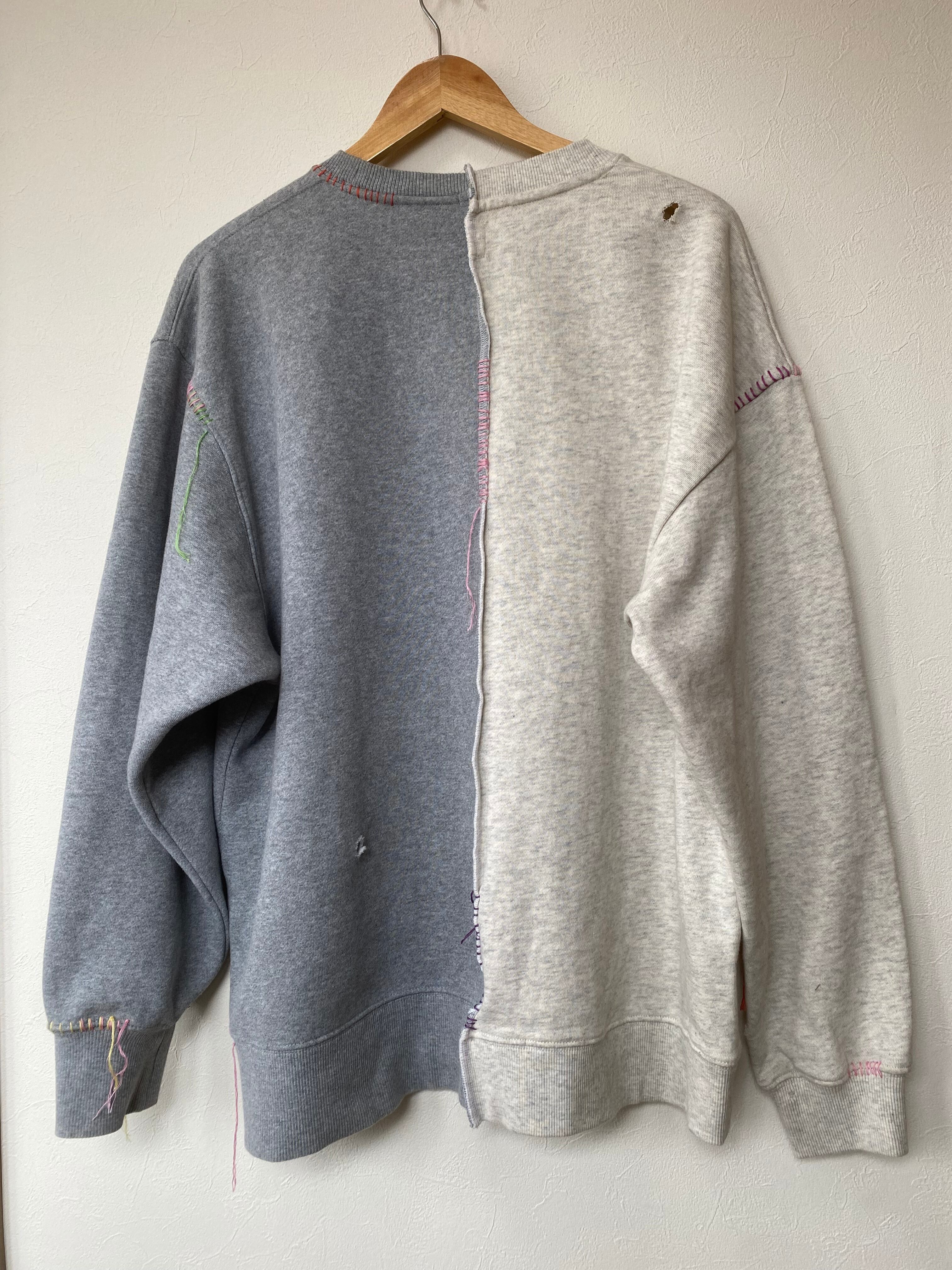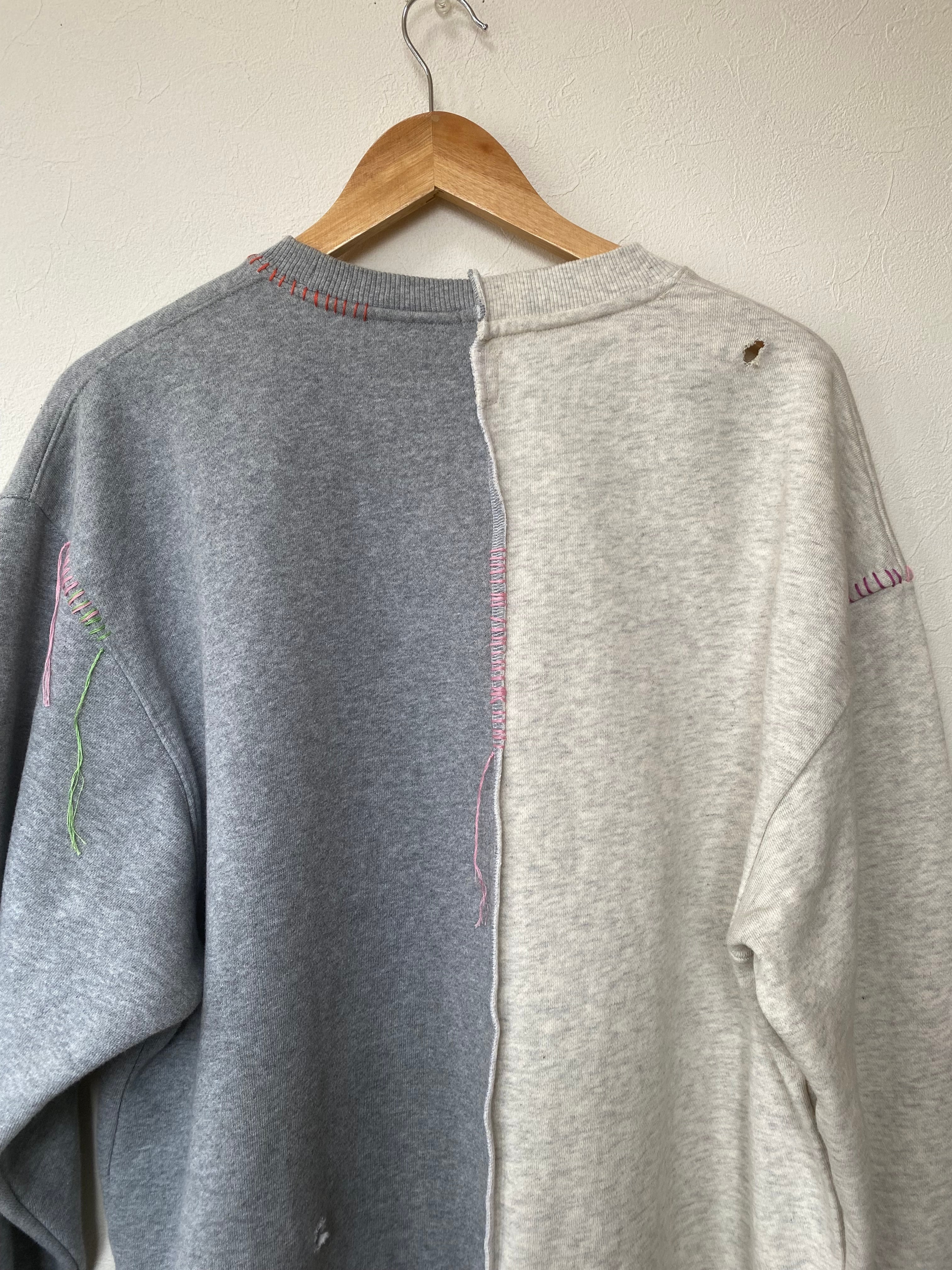 古着のスウェットシャツを中心でドッキング