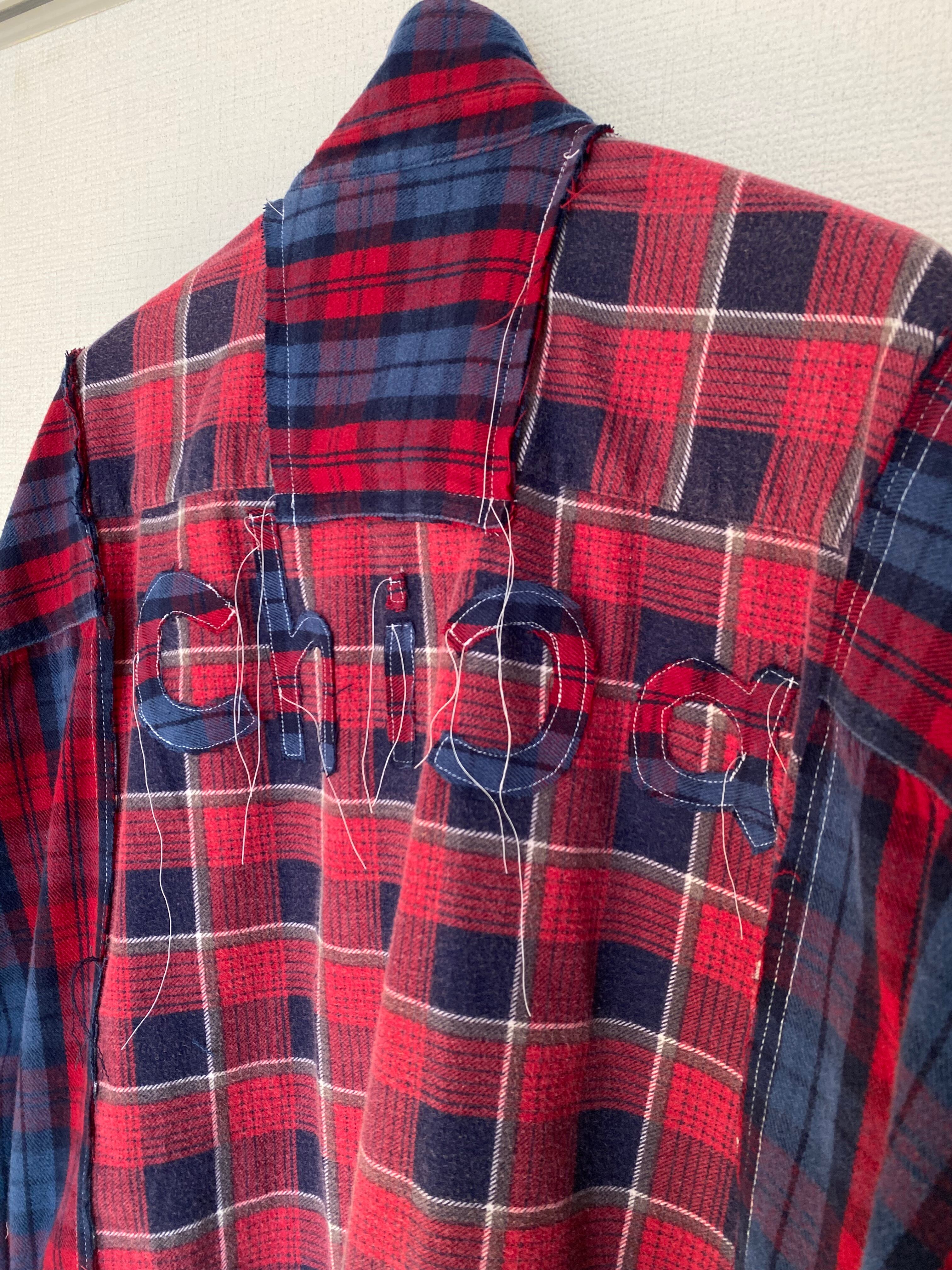 4枚のネルシャツを使ったロングシャツ。